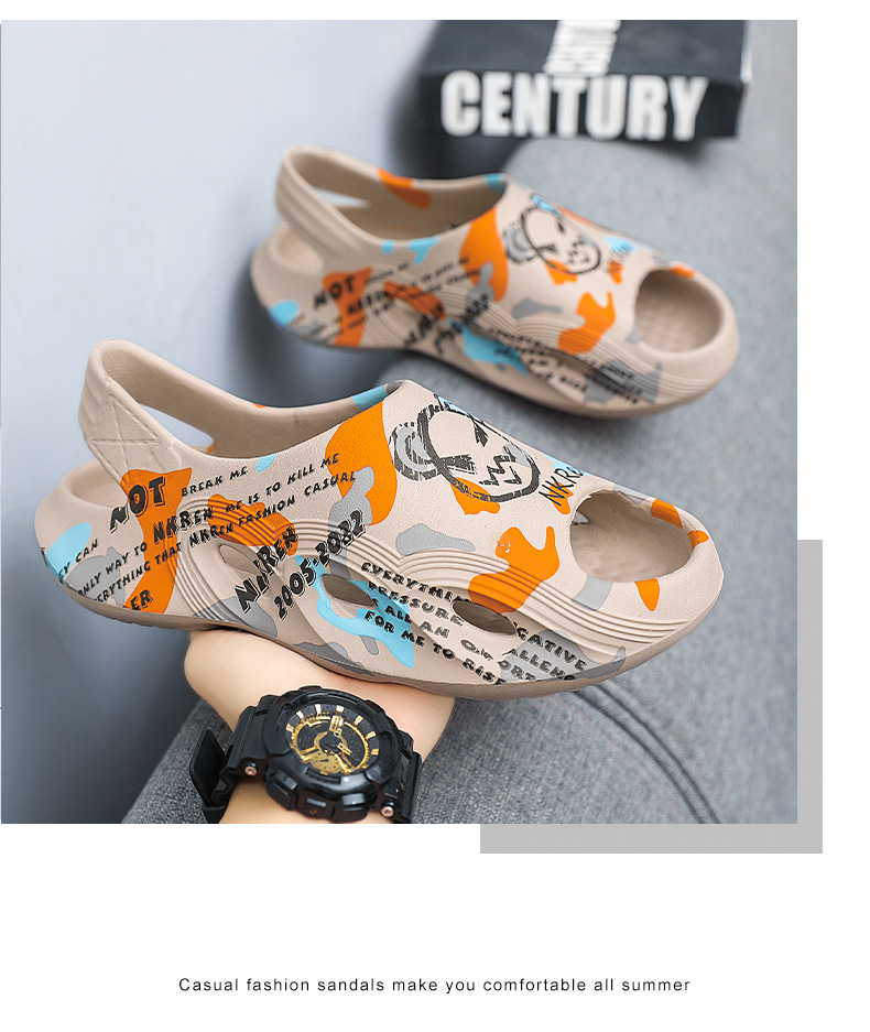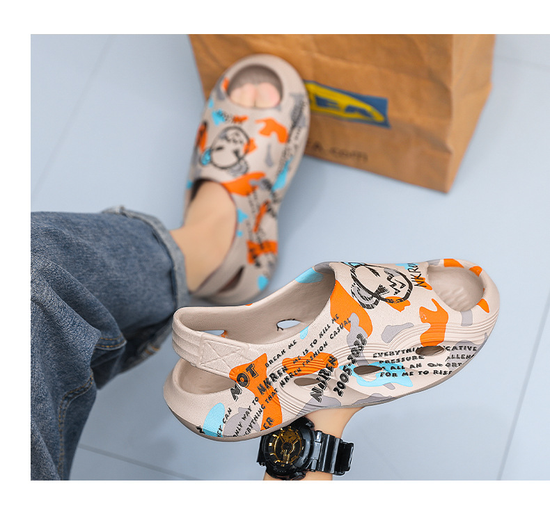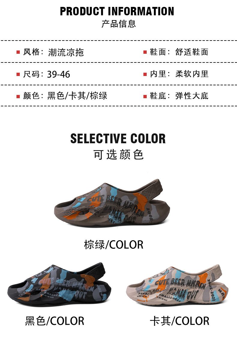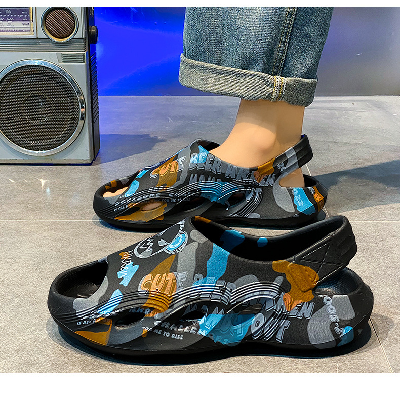 새로운 위장 슬리퍼 남성용 여름 실내 가정용 샌들은 두꺼운 바닥 욕실 미끄럼 방지 비치 슈즈 도매로 배설물을 밟습니다.스토어 가기