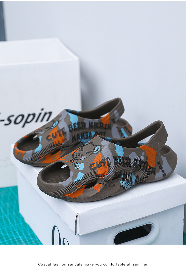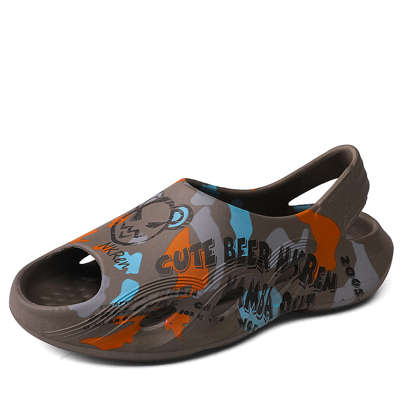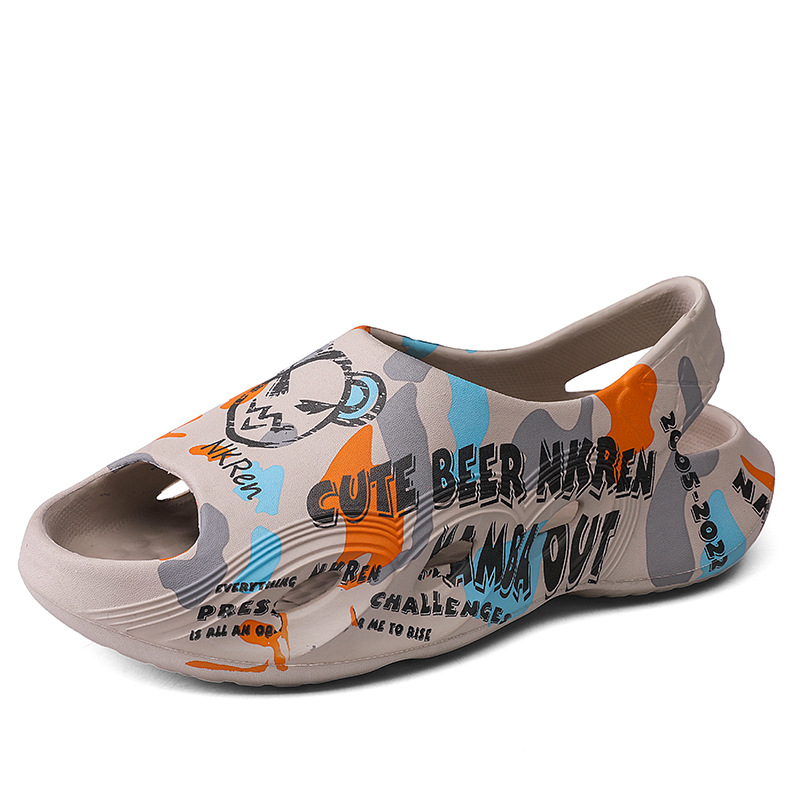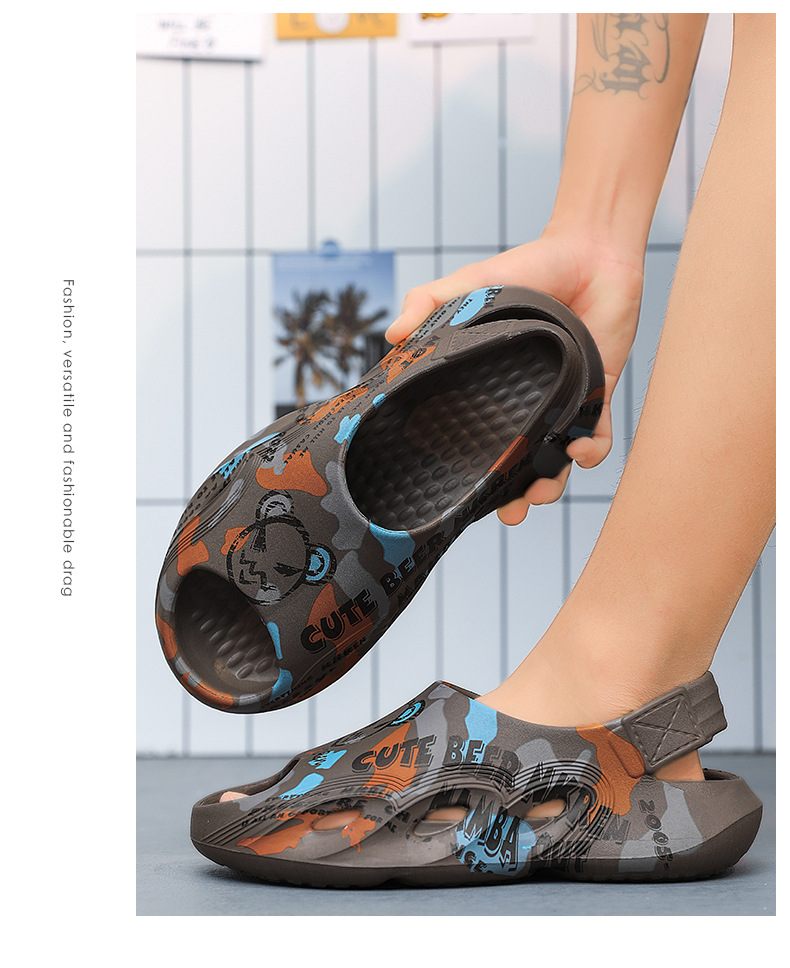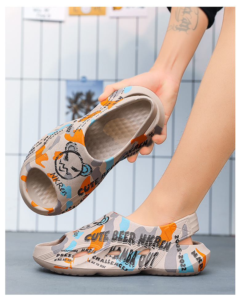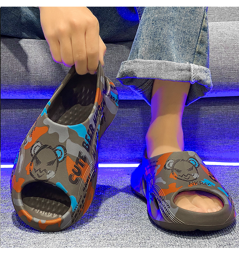 새로운 위장 슬리퍼 남성용 여름 실내 가정용 샌들은 두꺼운 바닥 욕실 미끄럼 방지 비치 슈즈 도매로 배설물을 밟습니다.