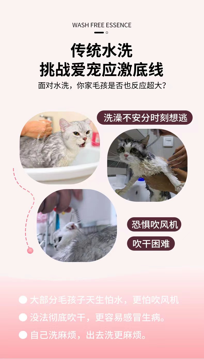 애완동물 노워시 에센스, 애완동물 샤워젤, 고양이 및 강아지 탈취제, 클렌징 드라이클리닝 에센스, 바디워시 제조업체스토어 가기