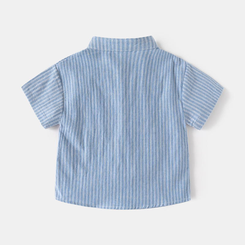 어린이 줄무늬 셔츠 2025 여름 소년 v 넥 반팔 셔츠 한국 스타일 베이비 캐주얼 탑 드롭 배송