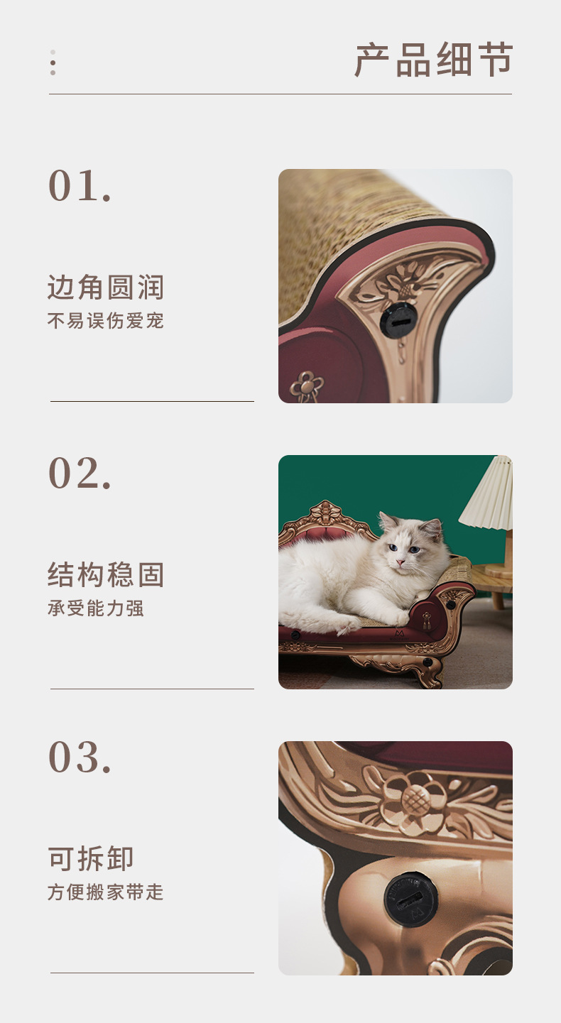 클래식 소파형 고양이 스크래치 보드, 이중 레이어로 쌓을 수 있는 골판지, 내마모성, 깨지지 않는 다기능 발톱 갈이판