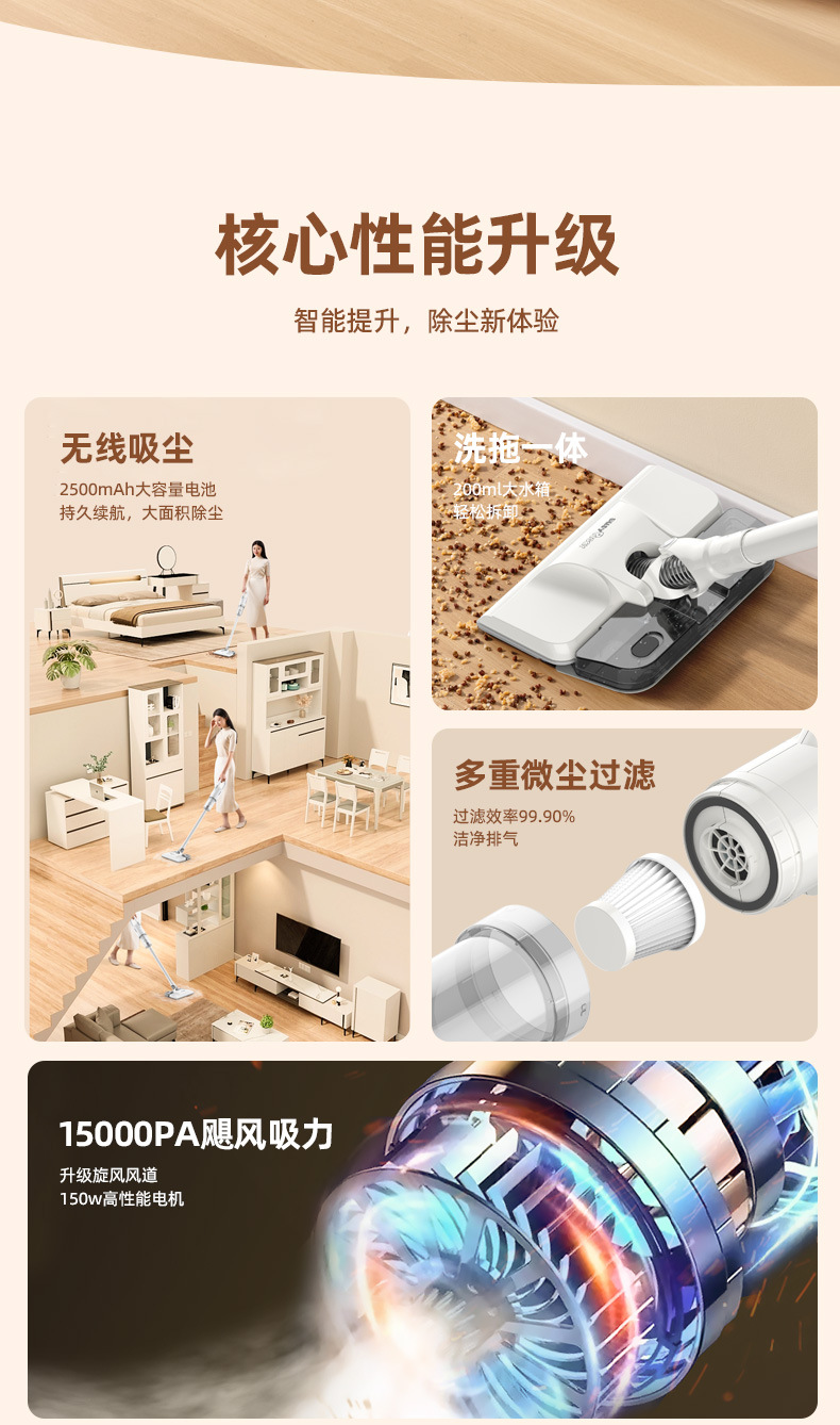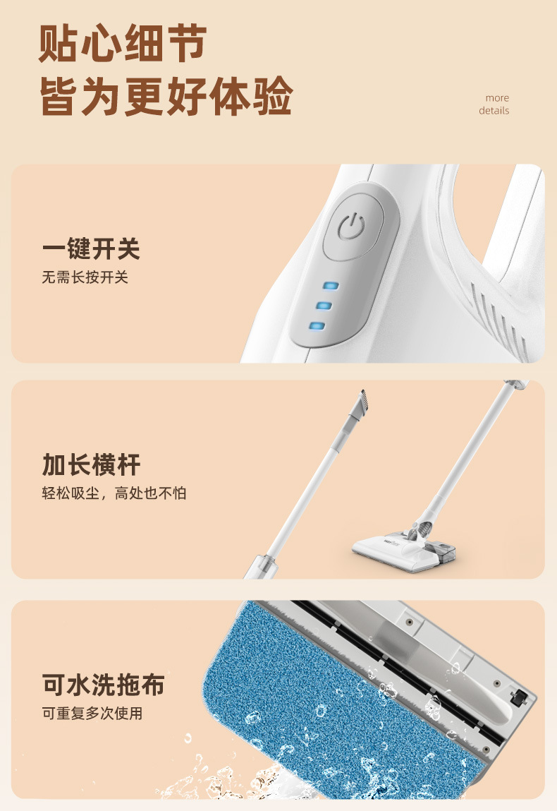 무선 진공 청소기 가정용 대형 흡입 무음 소형 휴대용 흡입 및 걸레질 일체형 강아지 털 진드기 제거