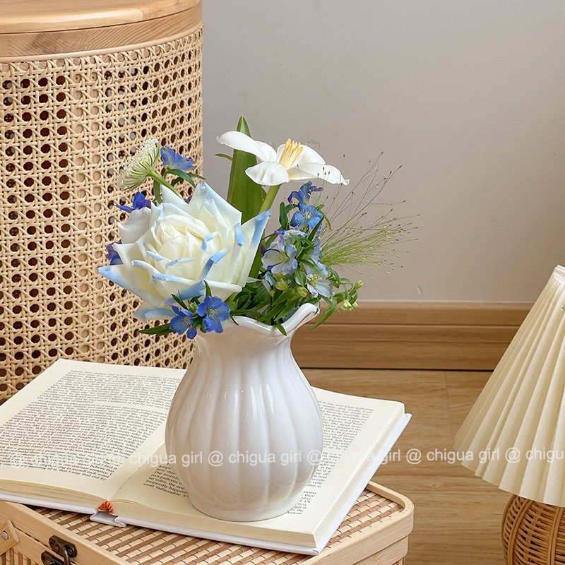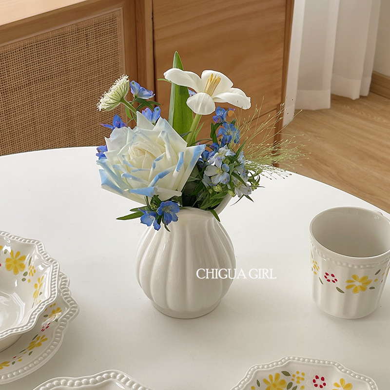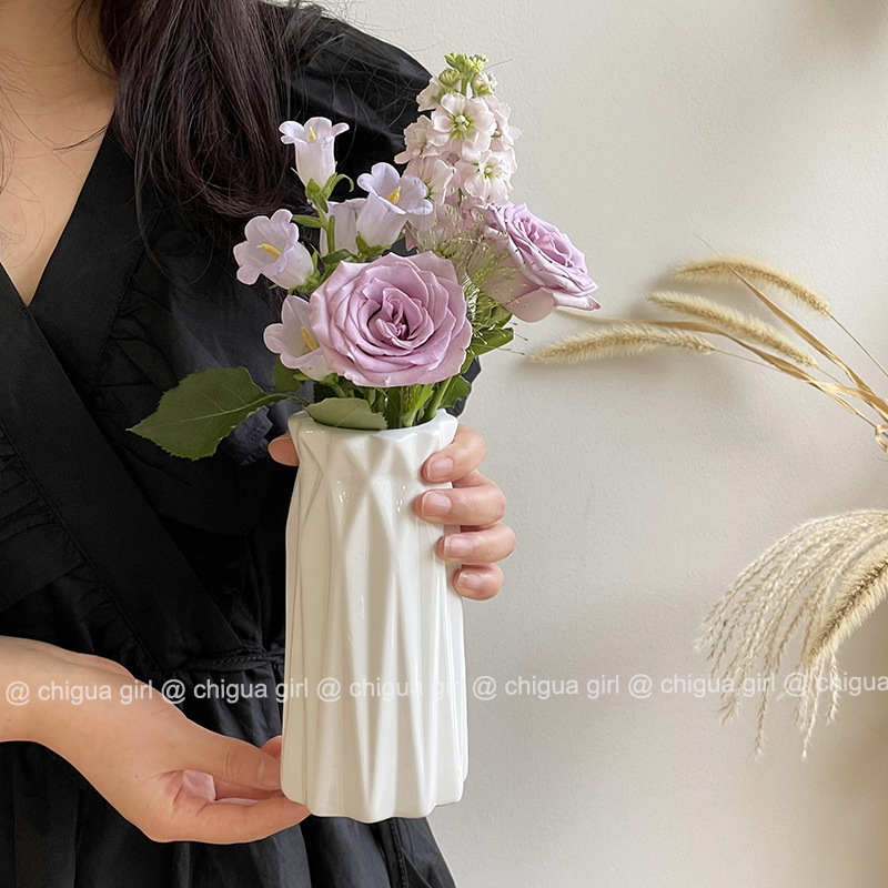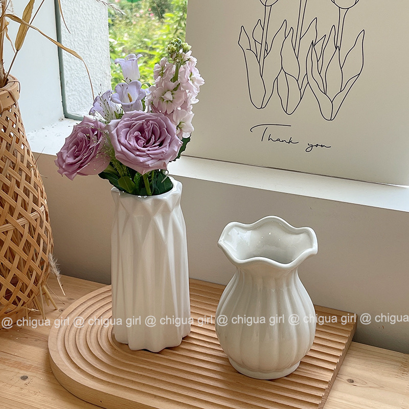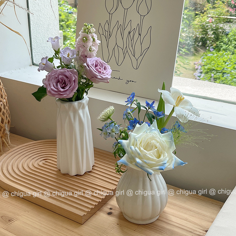 Ins 스타일 세라믹 작은 꽃병 흰색 도자기 고급 감각 흰색 꽃 배열 거실 식당 테이블 TV 캐비닛 간단한 장식 장식품스토어 가기