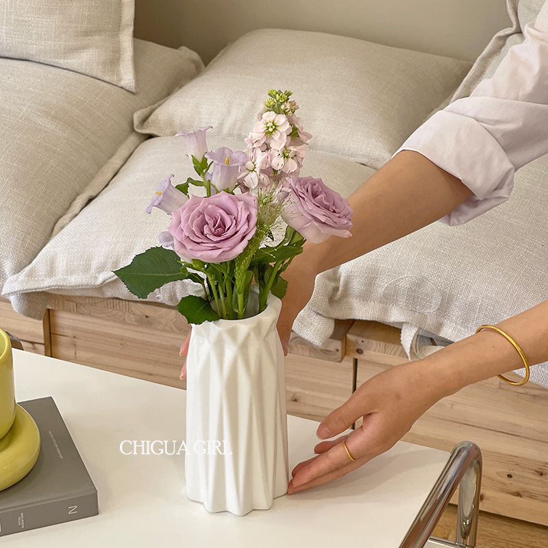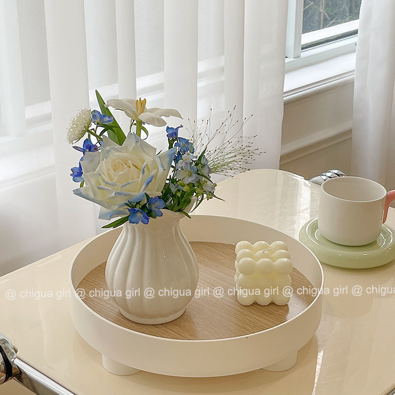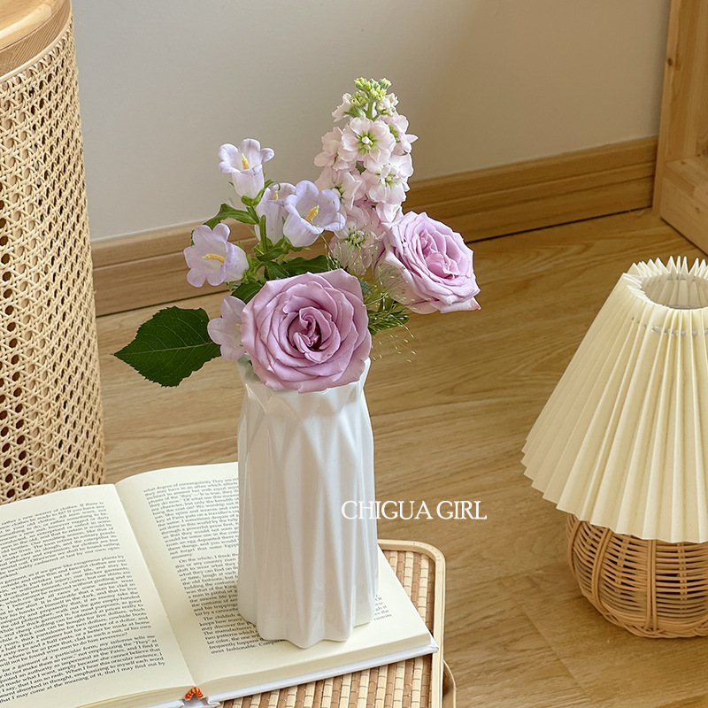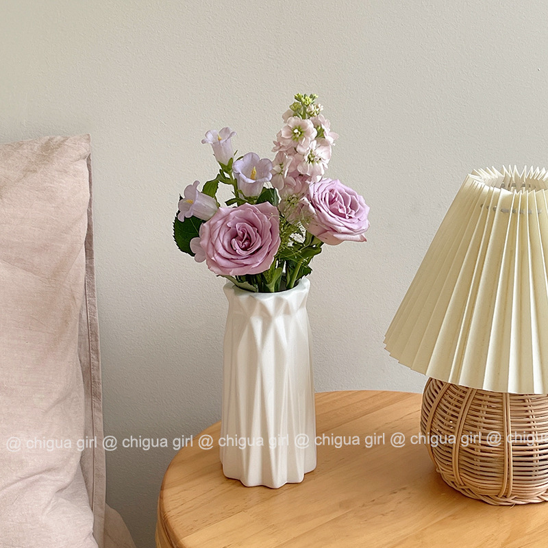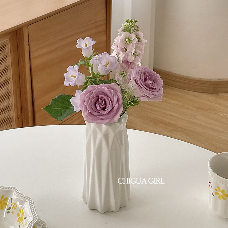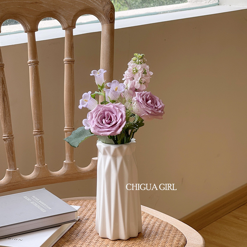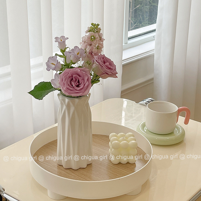 Ins 스타일 세라믹 작은 꽃병 흰색 도자기 고급 감각 흰색 꽃 배열 거실 식당 테이블 TV 캐비닛 간단한 장식 장식품