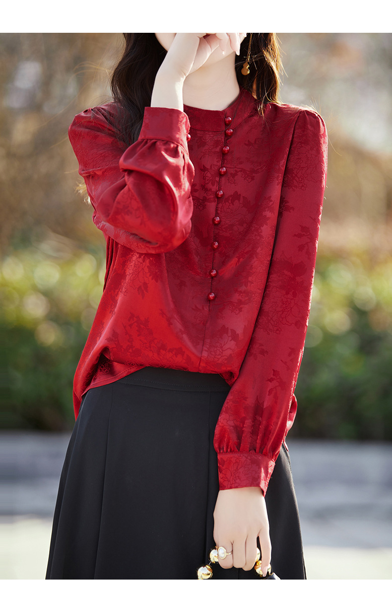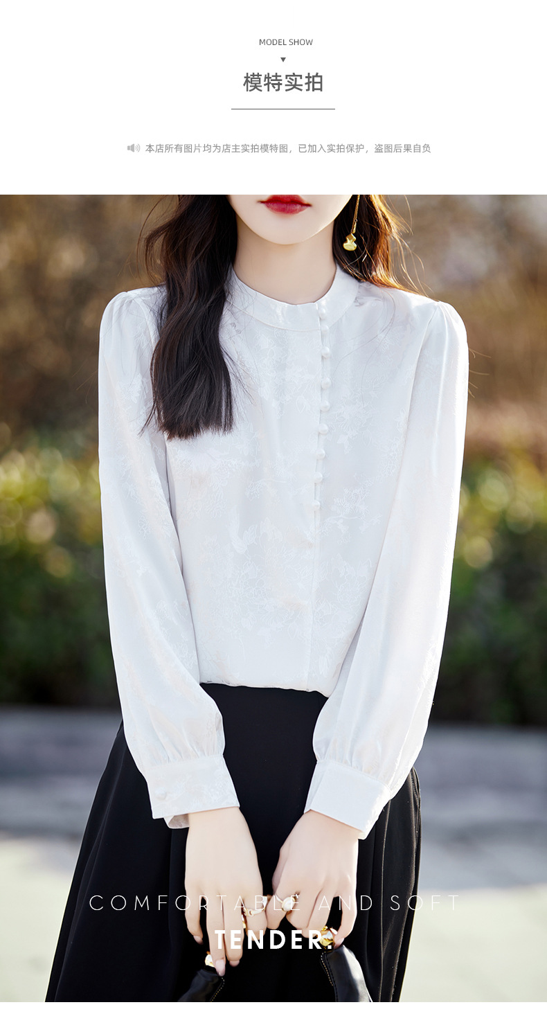 새로운 중국 스타일 셔츠 여성의 봄 새로운 청삼 칼라 탑 Acetic Acid Satin 수직 칼라 국가 스타일 여성 패션 쉬폰 작은 셔츠스토어 가기