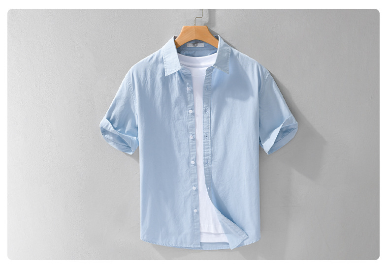 여름 남자 간단한 올매치 반팔 셔츠 면화 편안한 통기성 신선한 비즈니스 캐주얼 셔츠 358