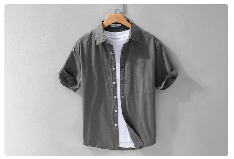 여름 남자 간단한 올매치 반팔 셔츠 면화 편안한 통기성 신선한 비즈니스 캐주얼 셔츠 358스토어 가기