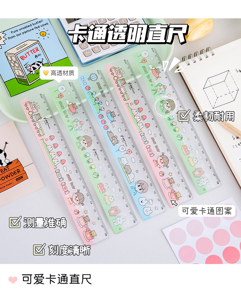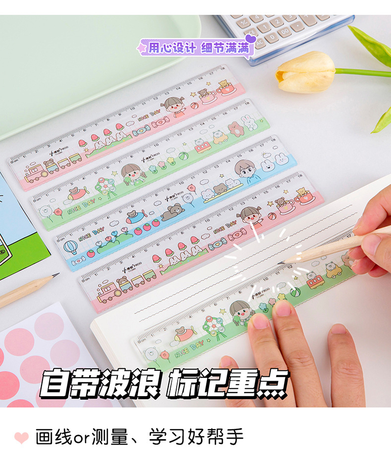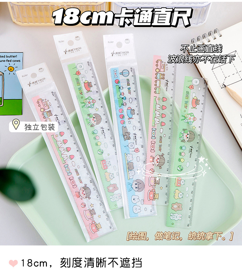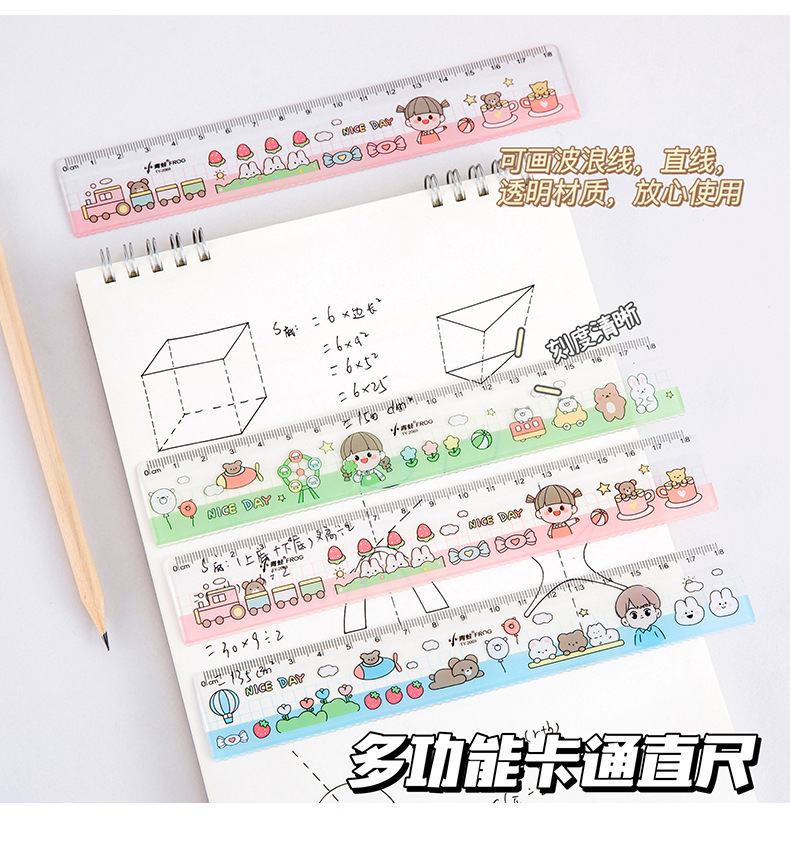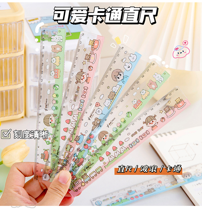 초등학생 투명 만화 통치자 18cm 학생 문구 도매 물결 선 통치자와 다기능 기하학적 통치자스토어 가기