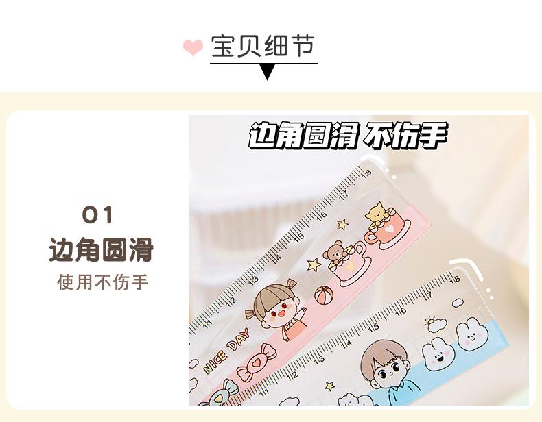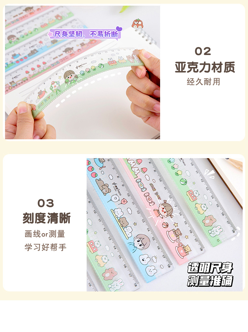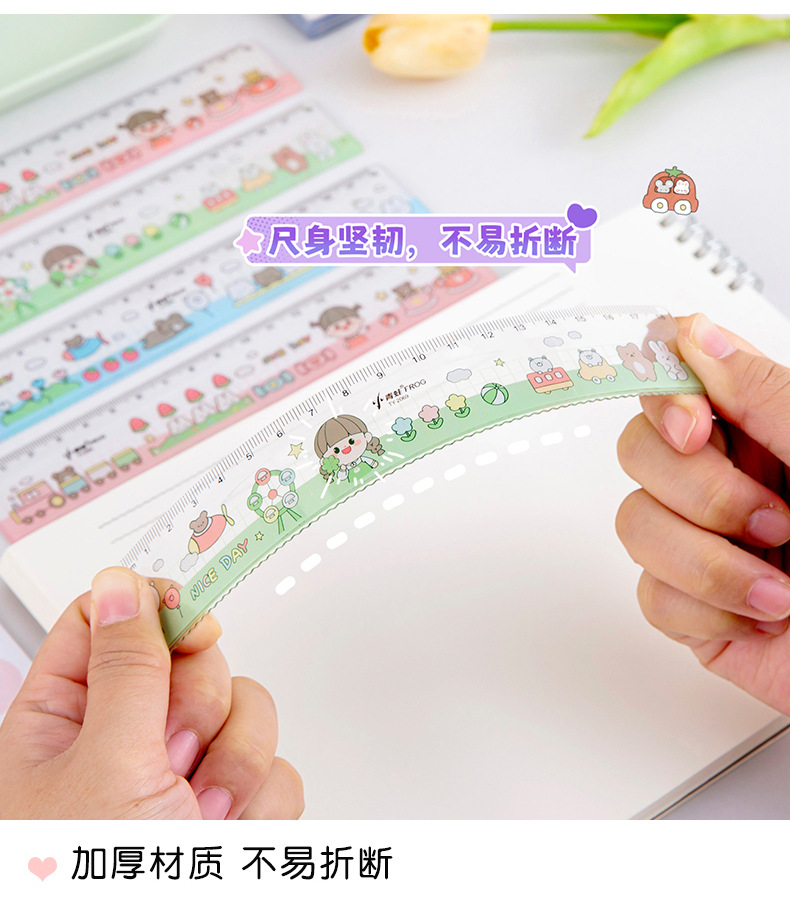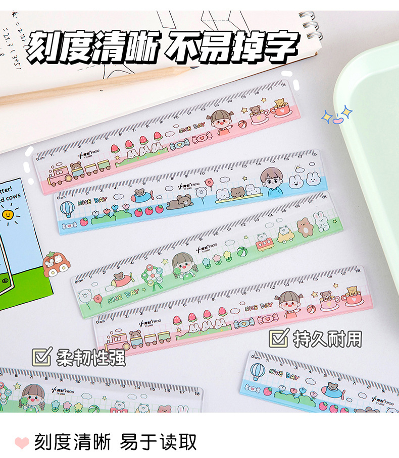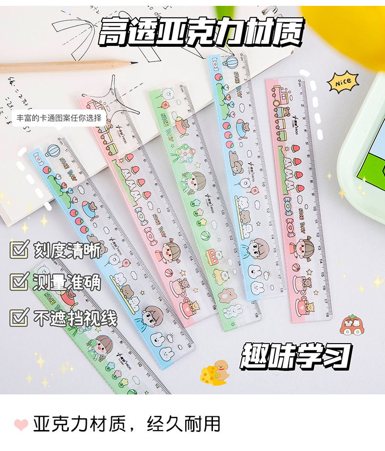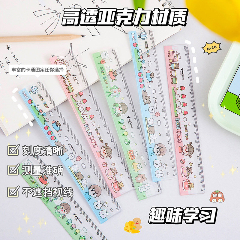 초등학생 투명 만화 통치자 18cm 학생 문구 도매 물결 선 통치자와 다기능 기하학적 통치자스토어 가기
