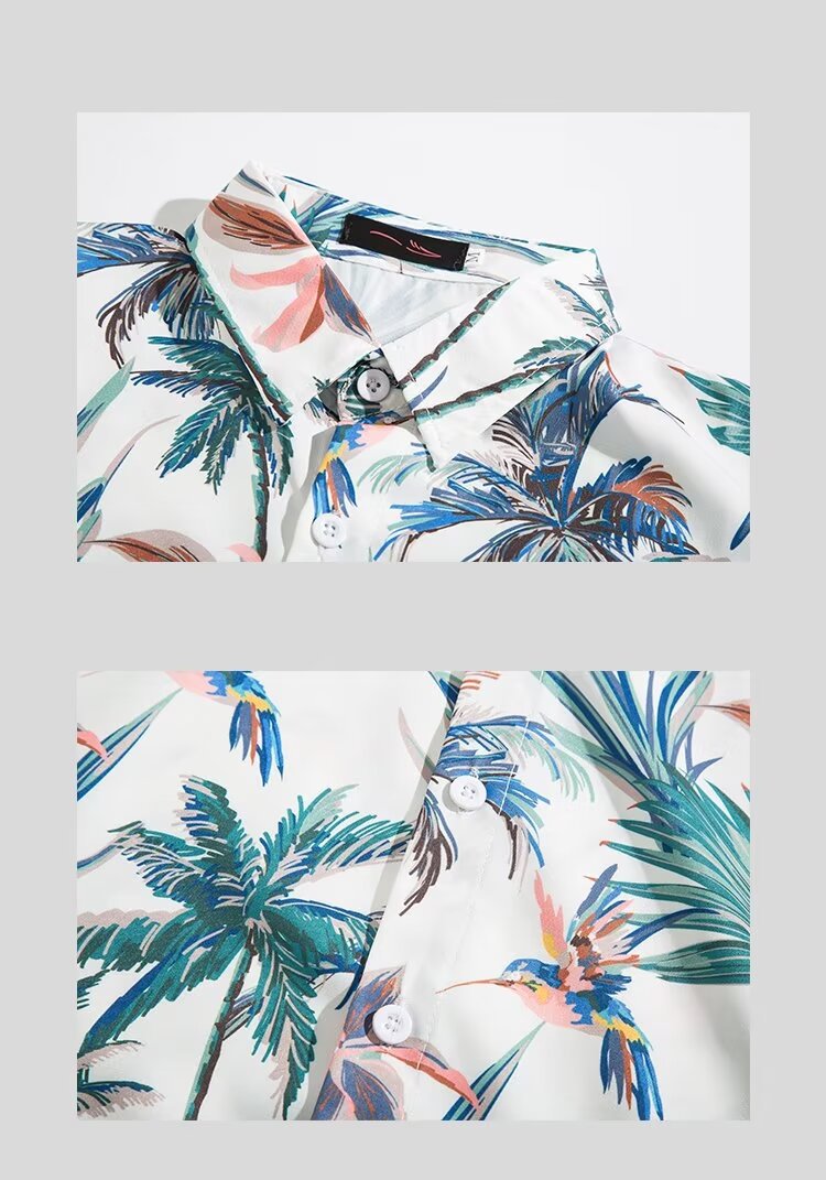 하와이 비치 셔츠 남자 반팔 여름 산야 해변 휴가 남자 타이 스타일 레트로 홍콩 스타일 꽃 셔츠스토어 가기