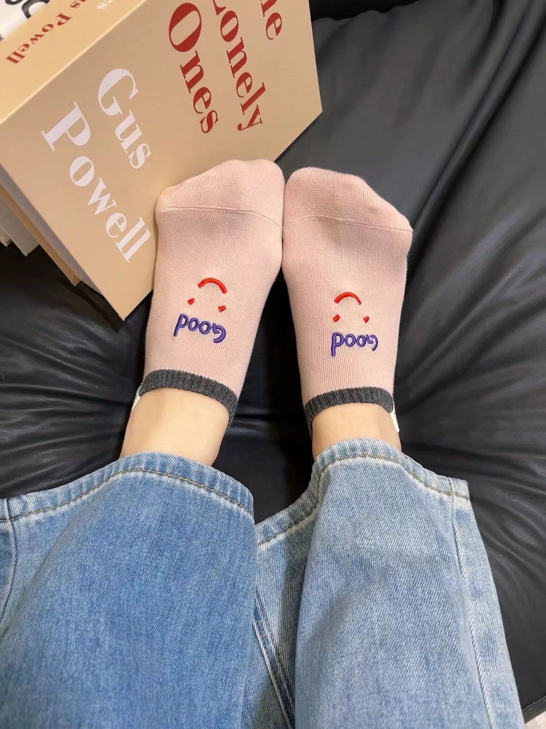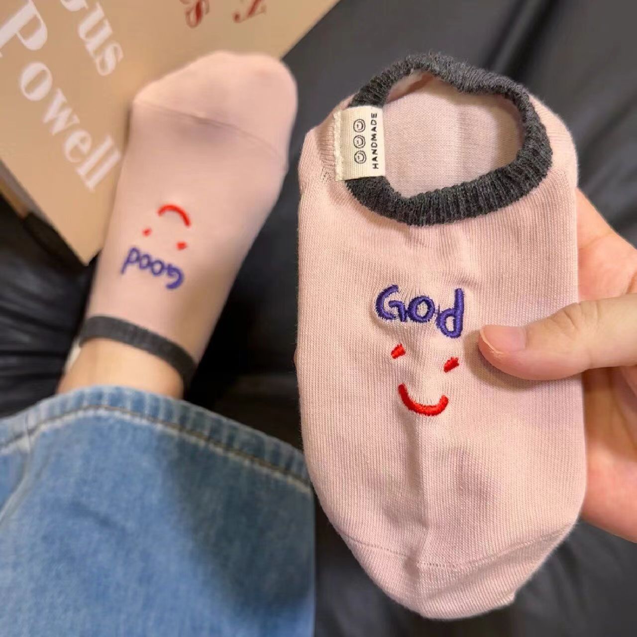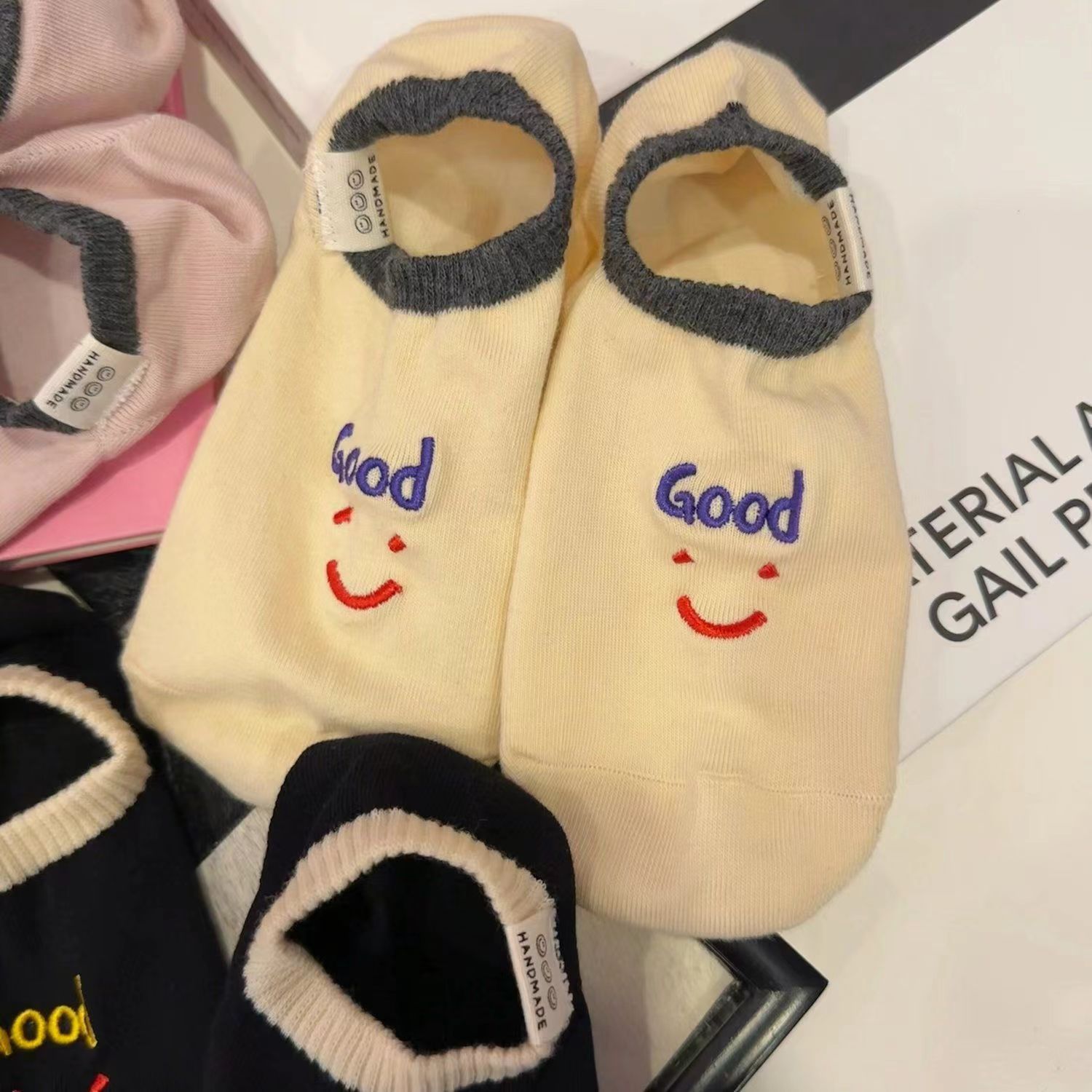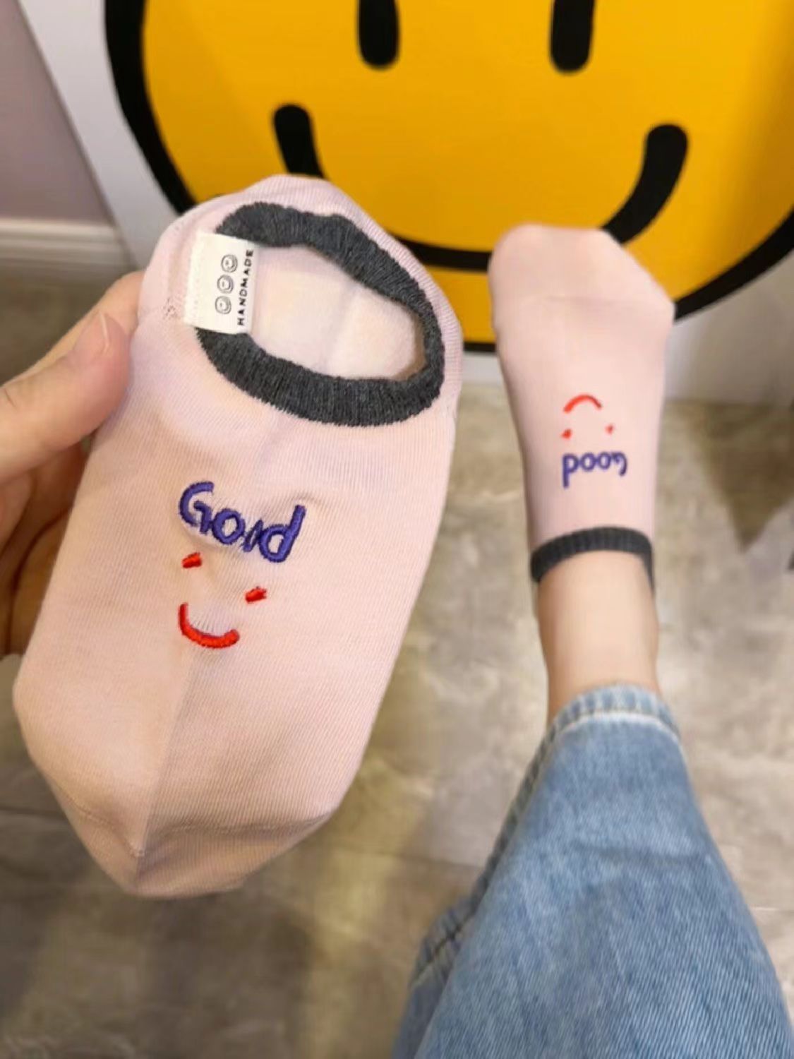 2024 년 봄과 여름 쇼트 양말 여성의 새로운 올 매치 양말 여성 자수 스마일리 편지는 귀여운 보이지 않는 달콤한 보트 양말을 벗어나지 않습니다.스토어 가기