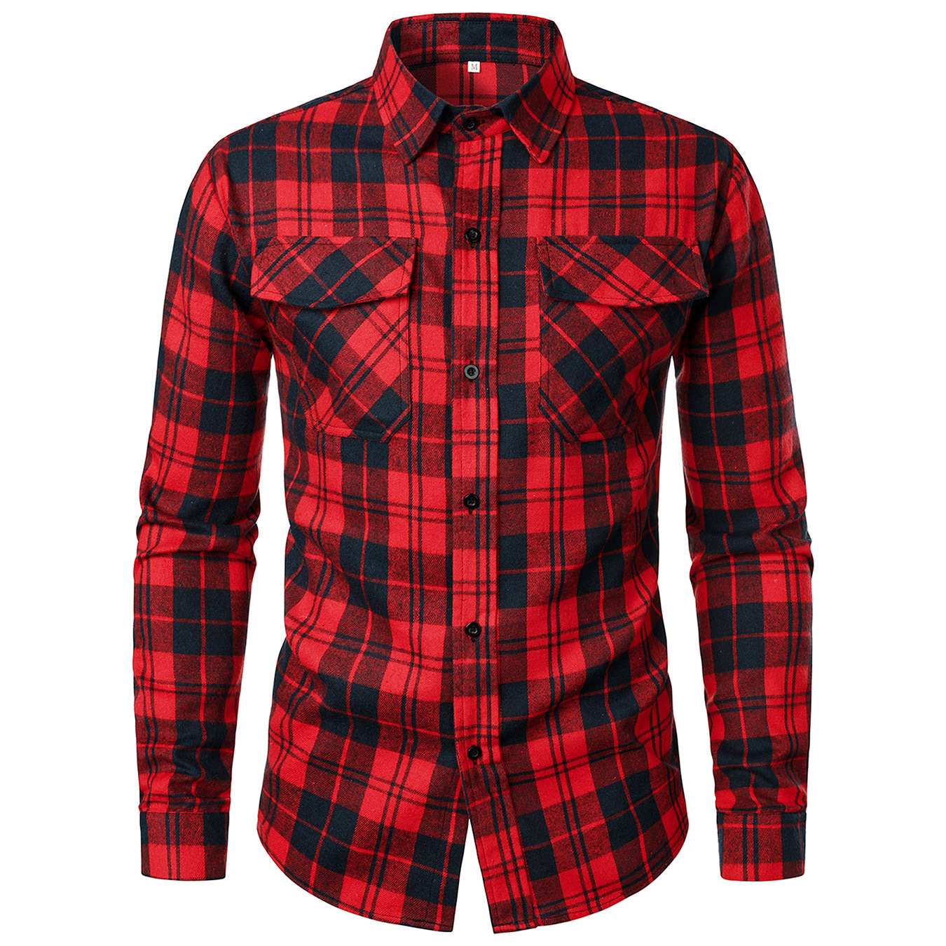 TEMU 대외 무역 국경 폭발 봄 새로운 남성 캐주얼 성격 긴 소매 옷깃 셔츠 패션 격자 무늬 셔츠