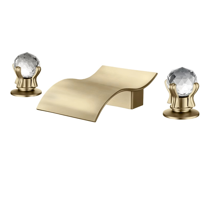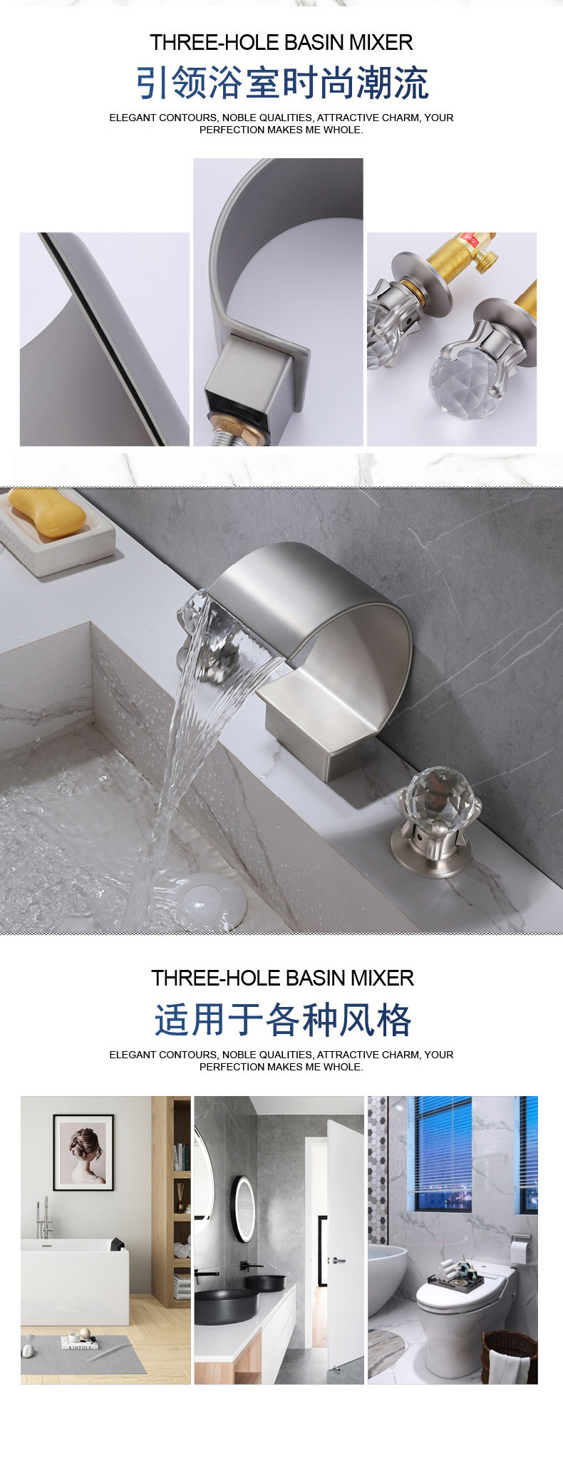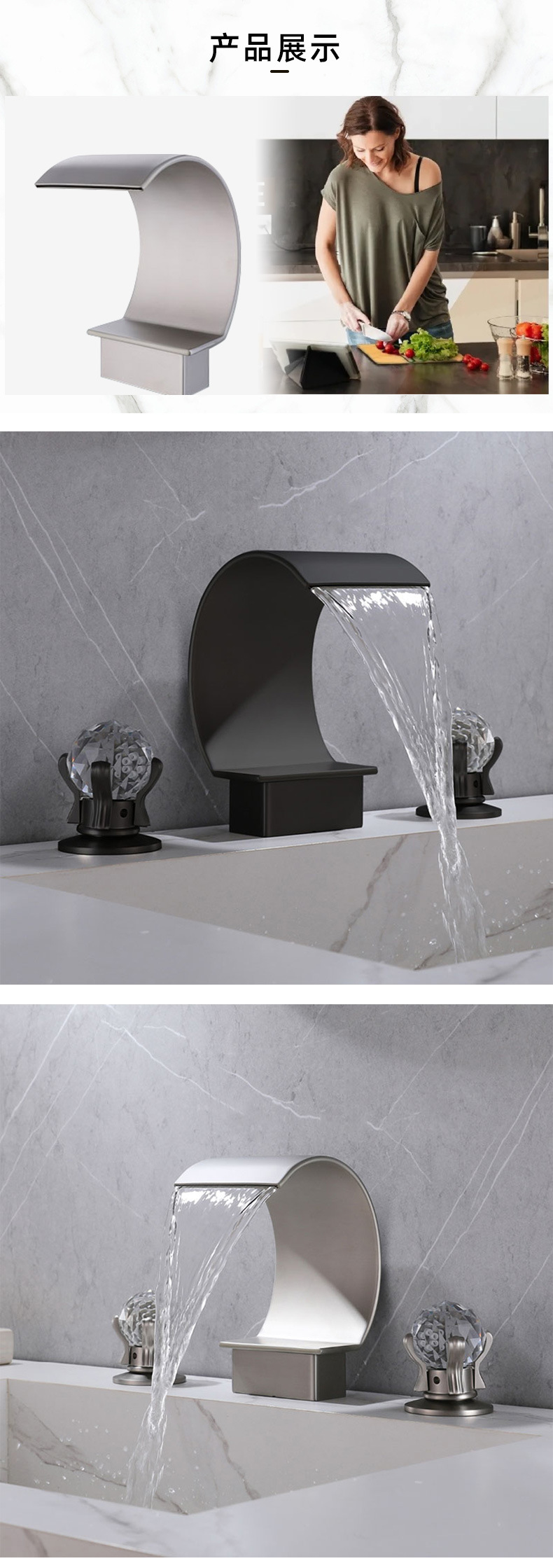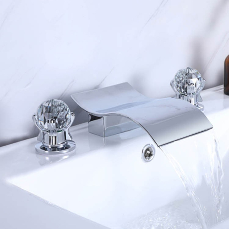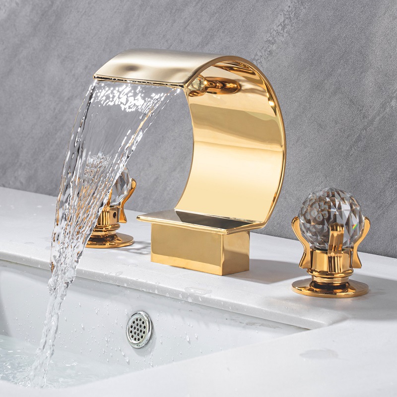 3 홀 세면기 수도꼭지 뜨겁고 차가운 욕실 더블 핸들 구리 세면기 폭포 유역 수도꼭지 아마존
