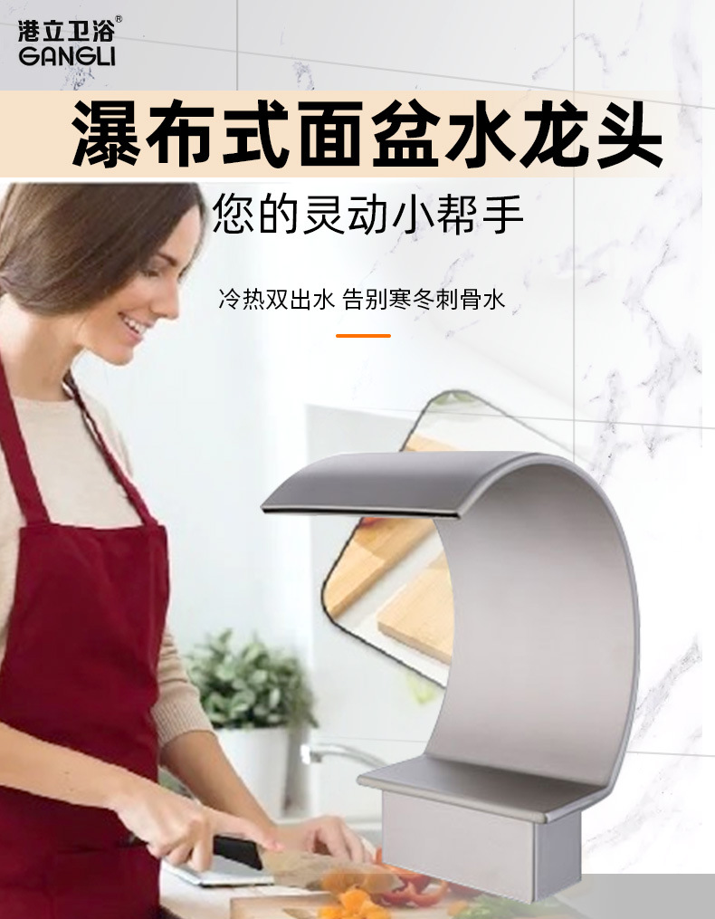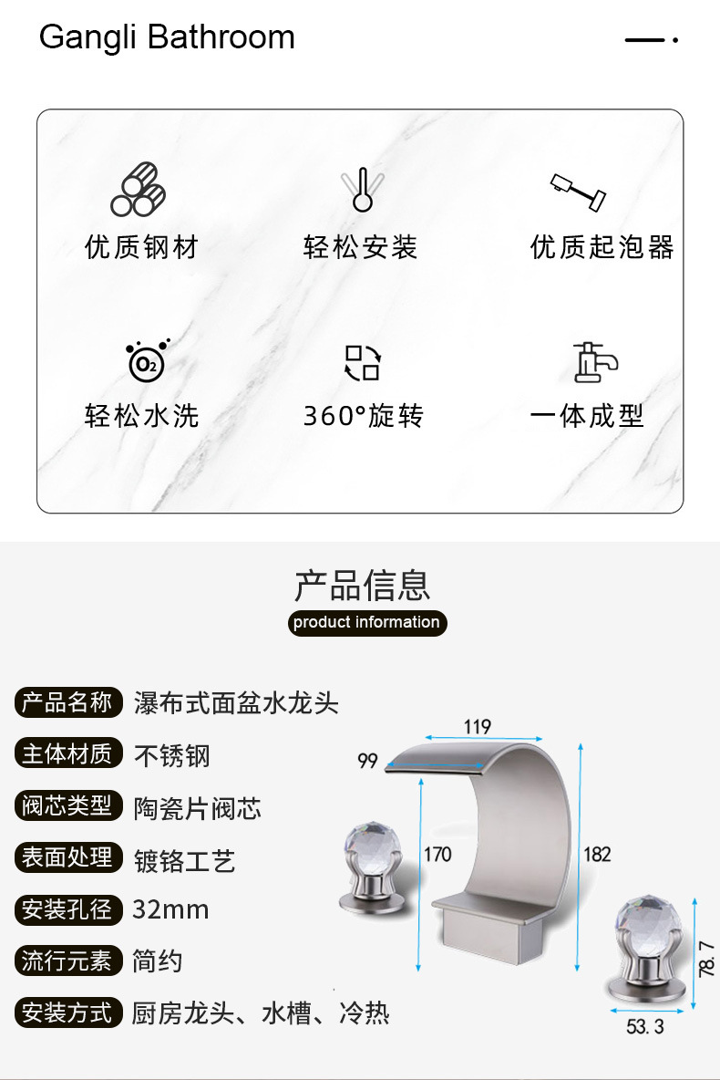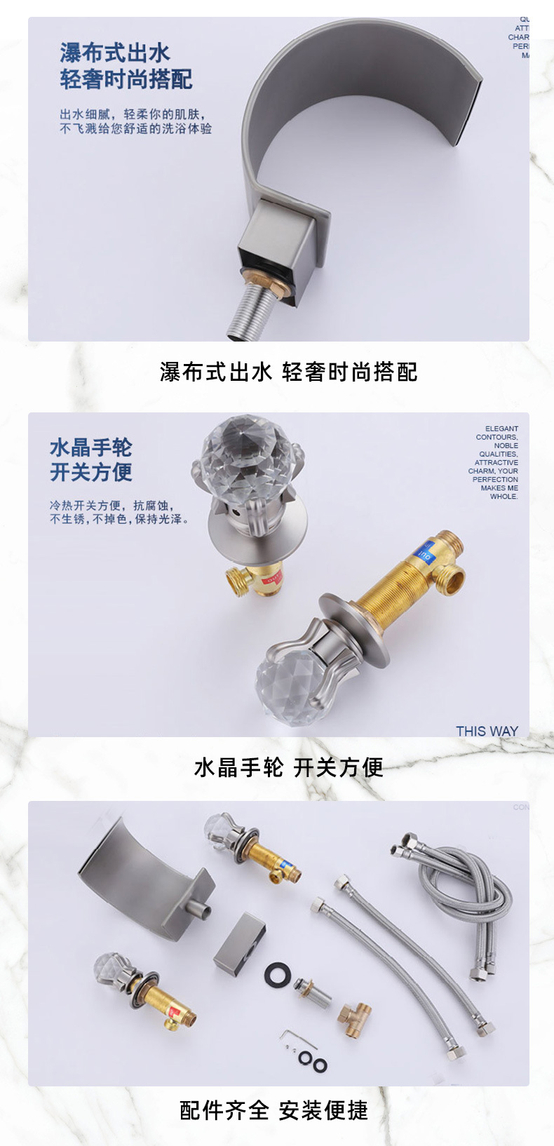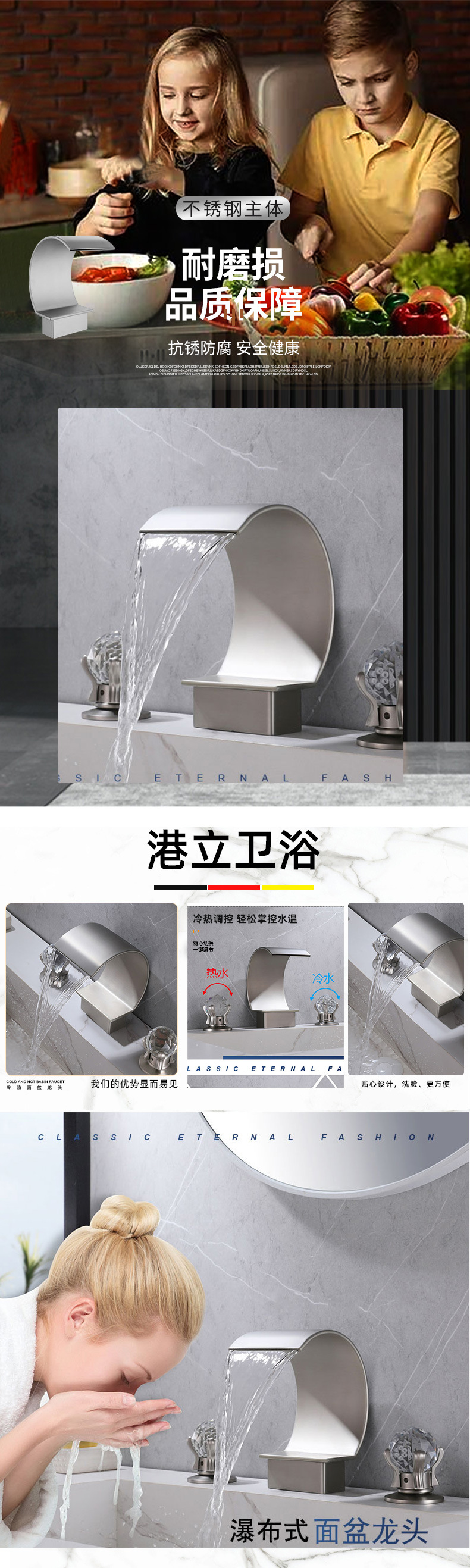 3 홀 세면기 수도꼭지 뜨겁고 차가운 욕실 더블 핸들 구리 세면기 폭포 유역 수도꼭지 아마존