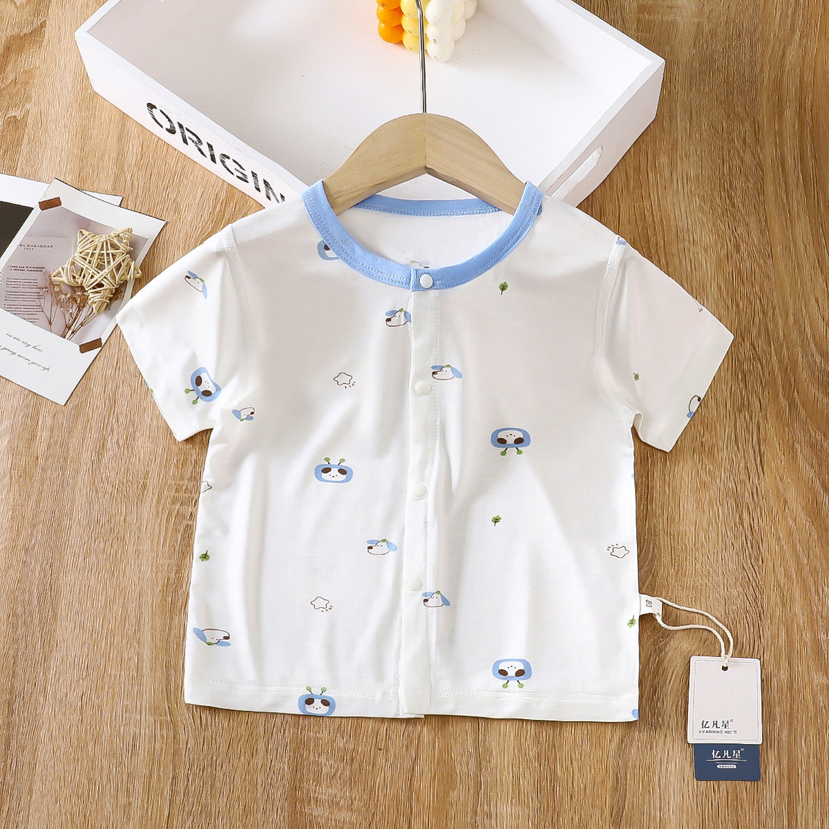 50 모달 뼈없는 아기 반소매 카디건 여름 얇은 아기 반소매 어린이 반소매 스웨트 셔츠 통기성