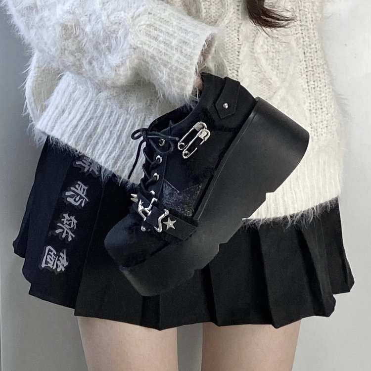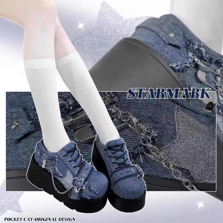 Lifeng 하위 문화 Y2K 고딕 데님 JK 신발 봄과 가을 둥근 발가락 여성 플랫폼 신발
