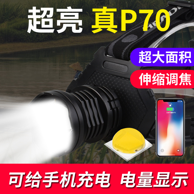 대외 무역 P50 P70 라이트 헤드 라이트 텔레스코픽 초점 USB 입력 및 출력 노란색 빛 야외 조명 캠핑스토어 가기