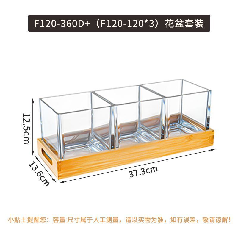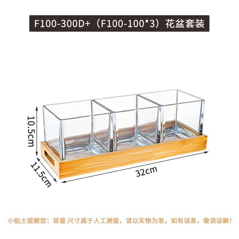 • 12cm 정사각형 화분*3+긴 나무 접시 조합 팩