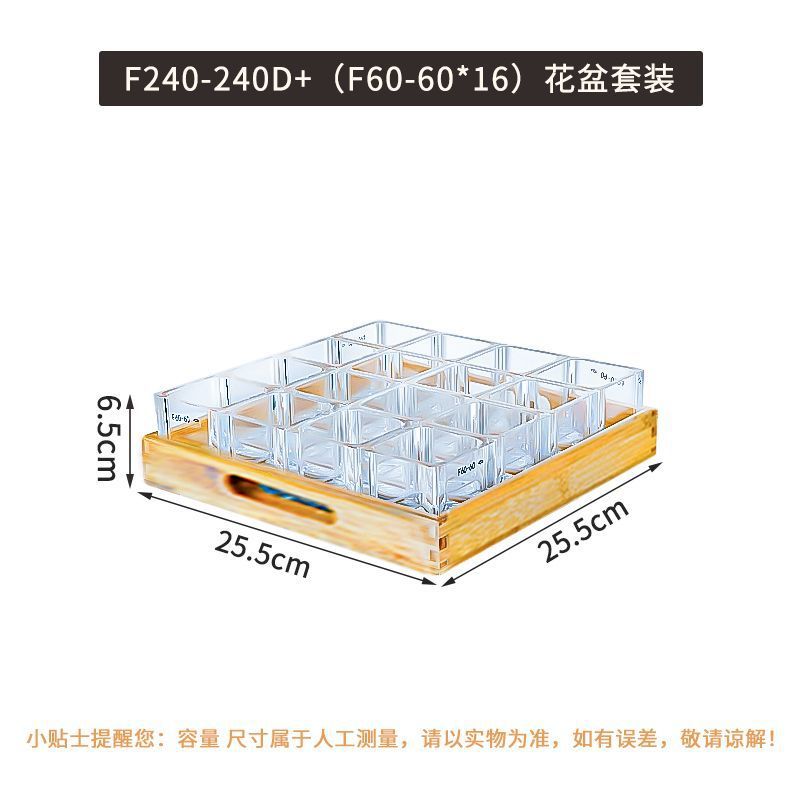 • 6cm 정사각형 화분*16+사각형 나무 접시 조합 팩