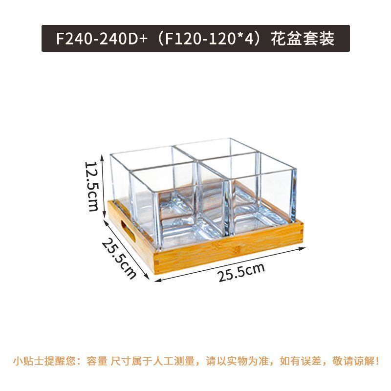 • 12cm 정사각형 화분*4+사각형 나무 접시 조합 팩