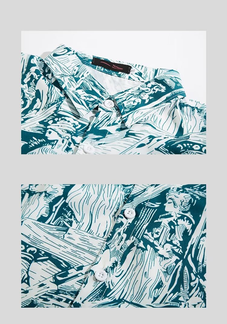 하와이 비치 셔츠 남자 반팔 여름 산야 해변 휴가 남자 타이 스타일 레트로 홍콩 스타일 꽃 셔츠스토어 가기
