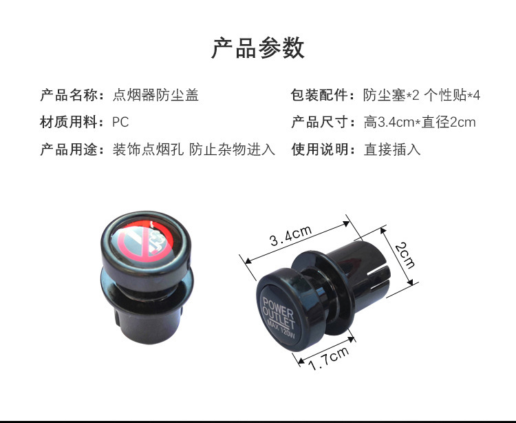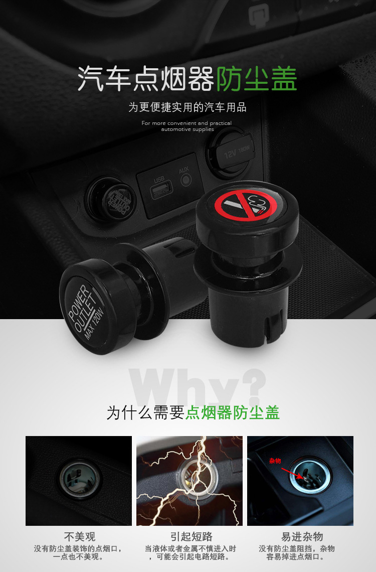1、防灰尘、异物进入点烟器插孔内;