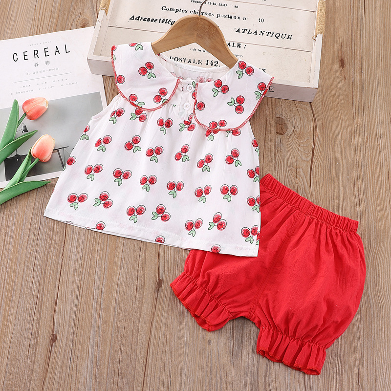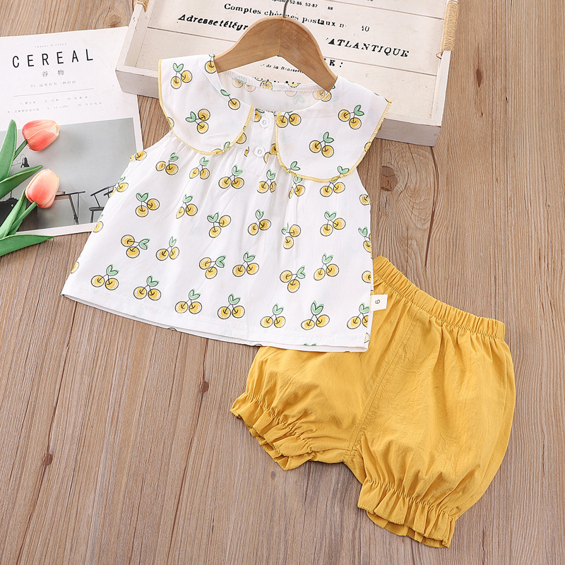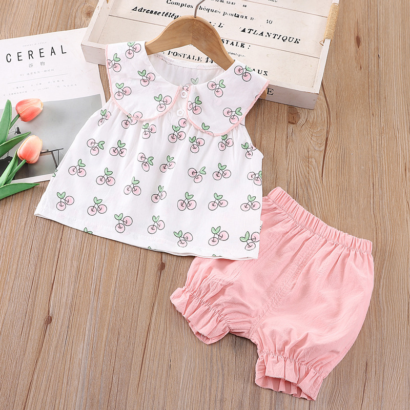 아동복 새로운 도착 2024 한국식 소녀 엘조끼 여름 민소매 세트 투피스 세트 아기의 여름 패션스토어 가기