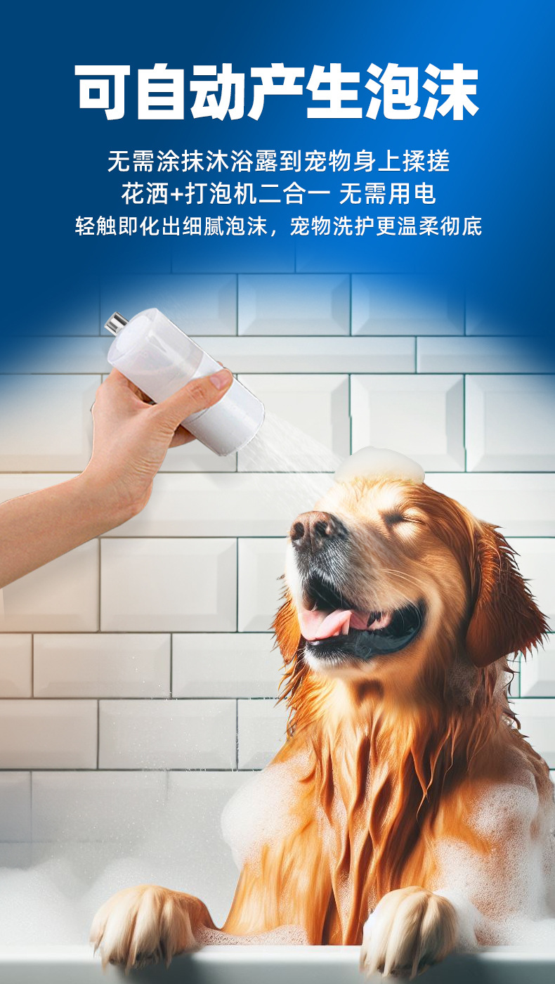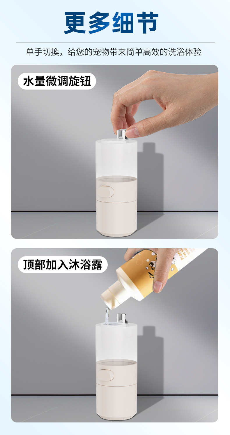 국경 새로운 자동 거품 애완 동물 목욕 거품 수도꼭지 슈퍼 차저 샤워 개 청소 미용 도구스토어 가기