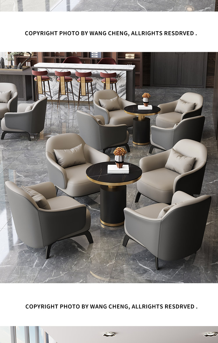 현대 판매 사무실 리셉션 테이블과 의자 조합 빛 럭셔리 호텔 클럽 레저 지역 단일 사람 협상 소파 1 테이블 2 개의 의자