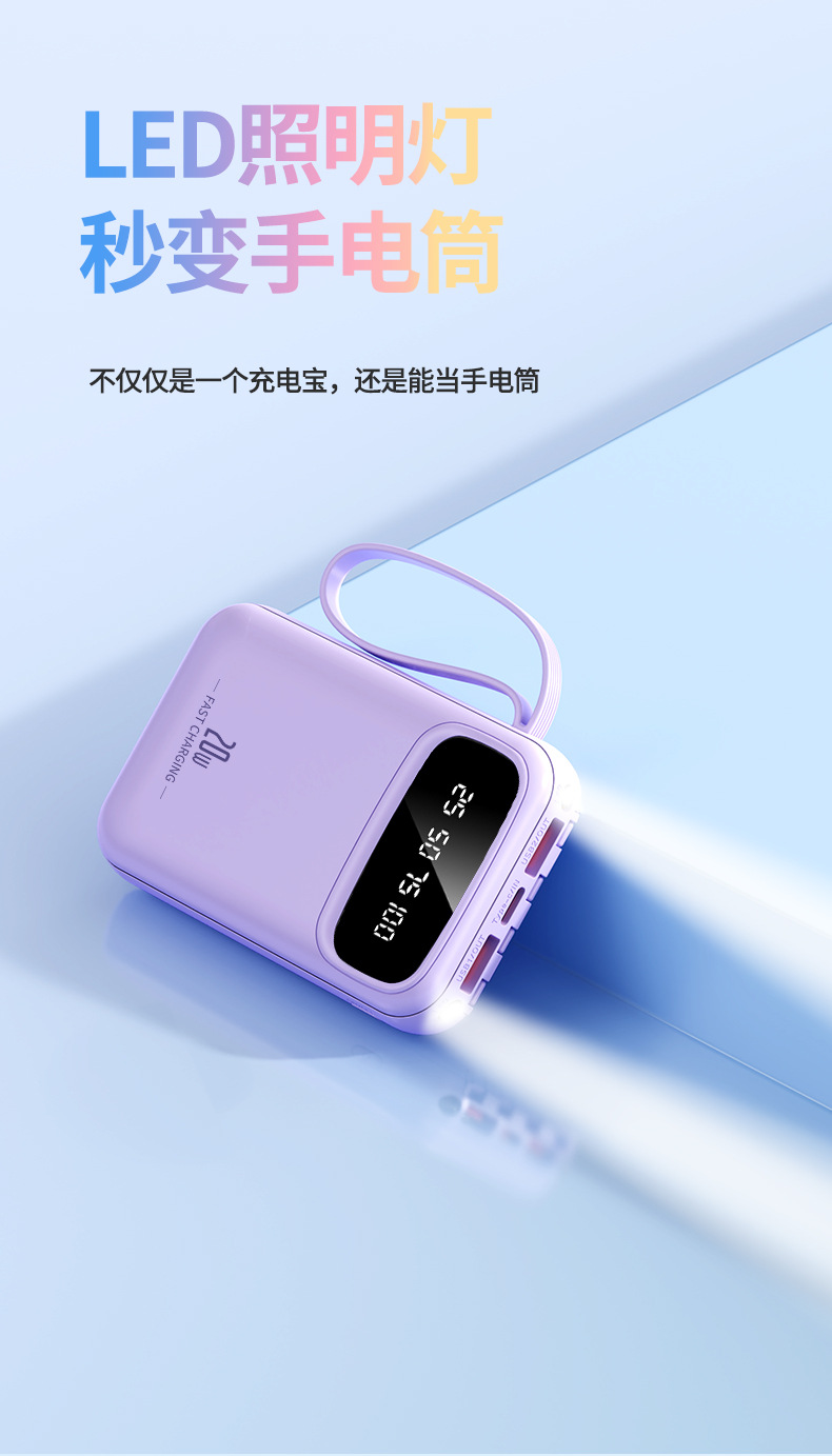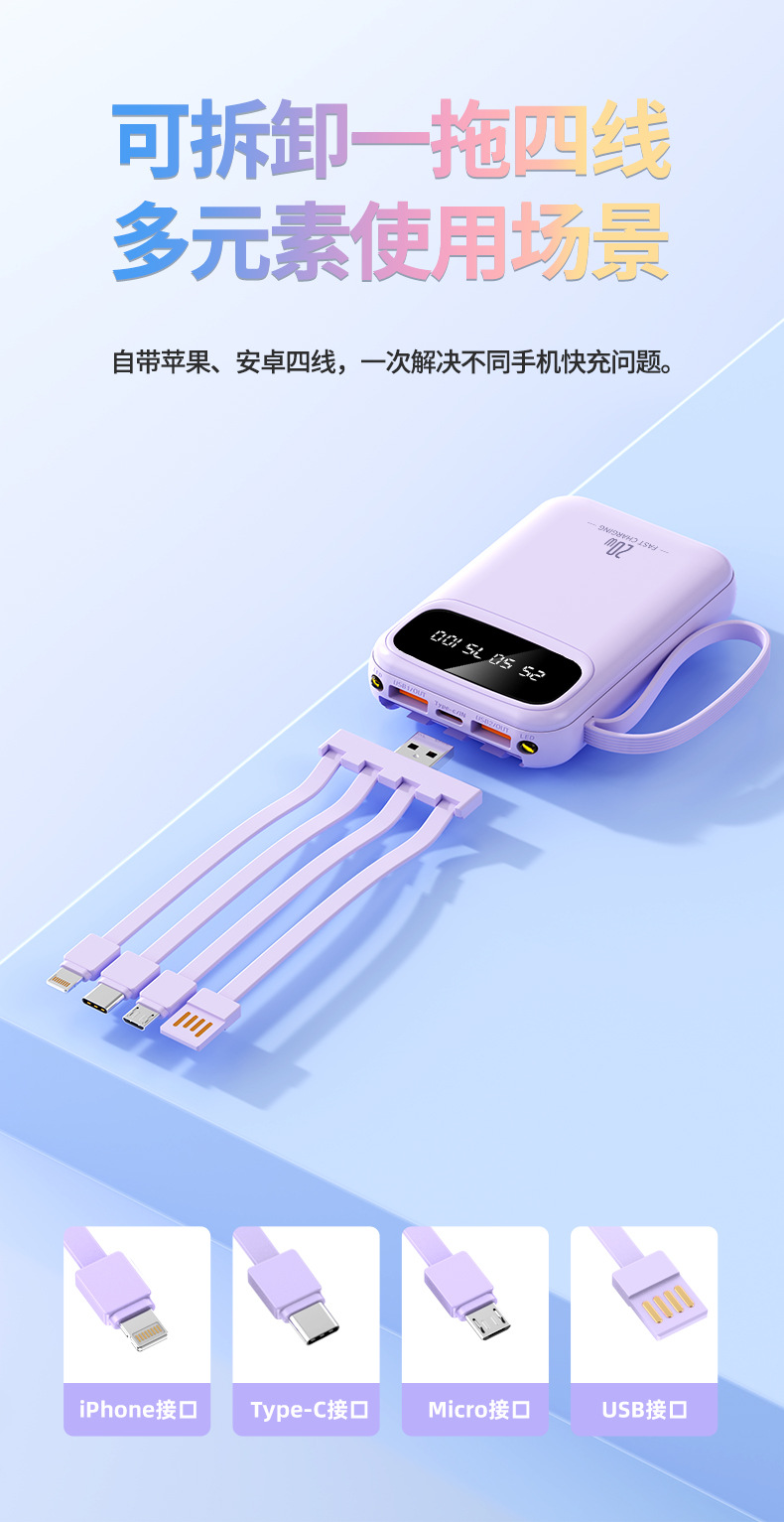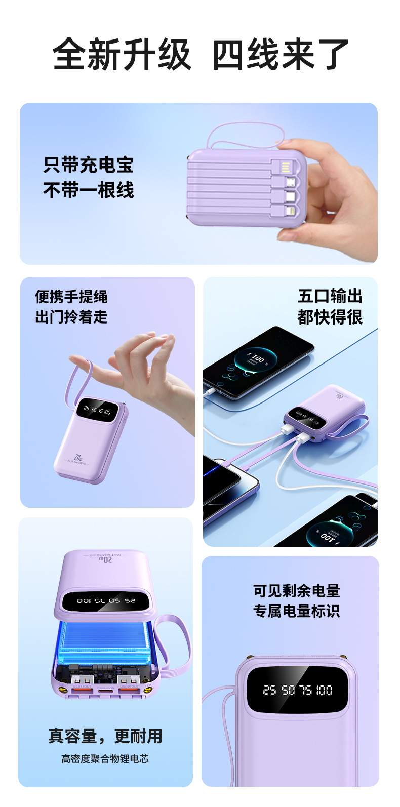내장 4 선 휴대용 슈퍼 대용량 조명 램프 전원 디스플레이 빠른 충전 모바일 전원 10000mAh