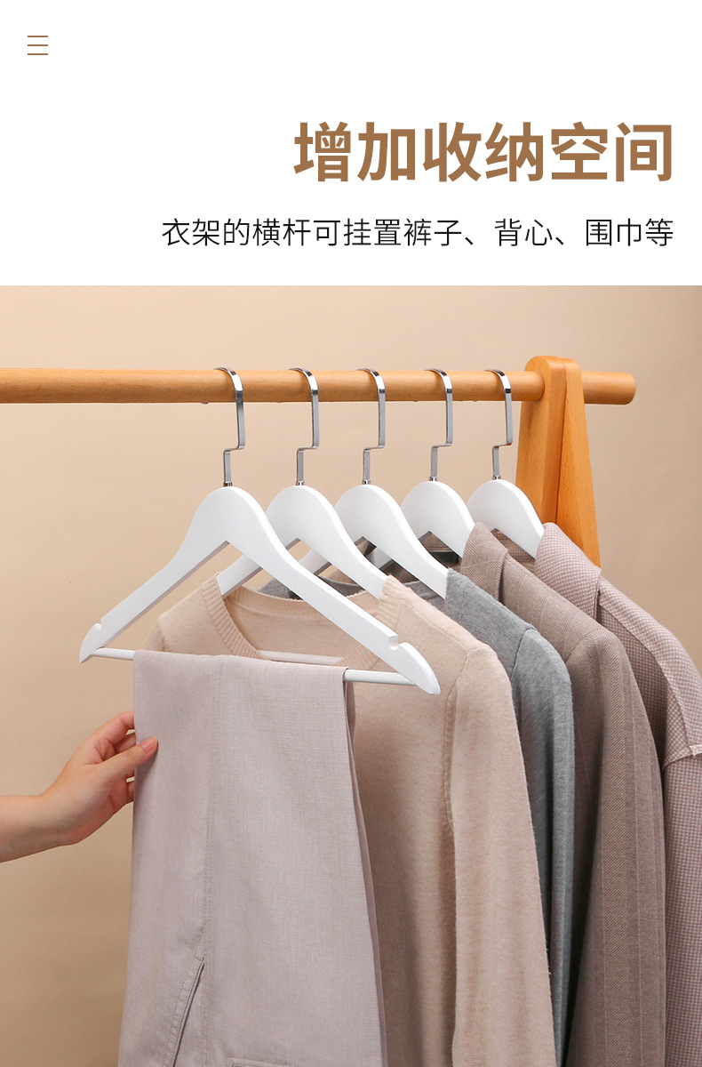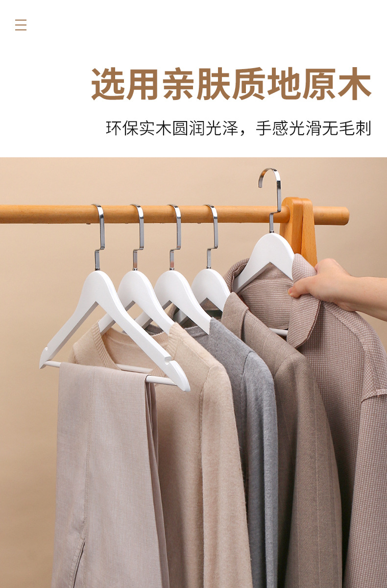 흰색 단단한 나무 옷 옷걸이 가정용 옷 교수형 침실 옷감 플랫 훅 미끄럼 방지 원활한 나무 옷 교수형 성인 옷