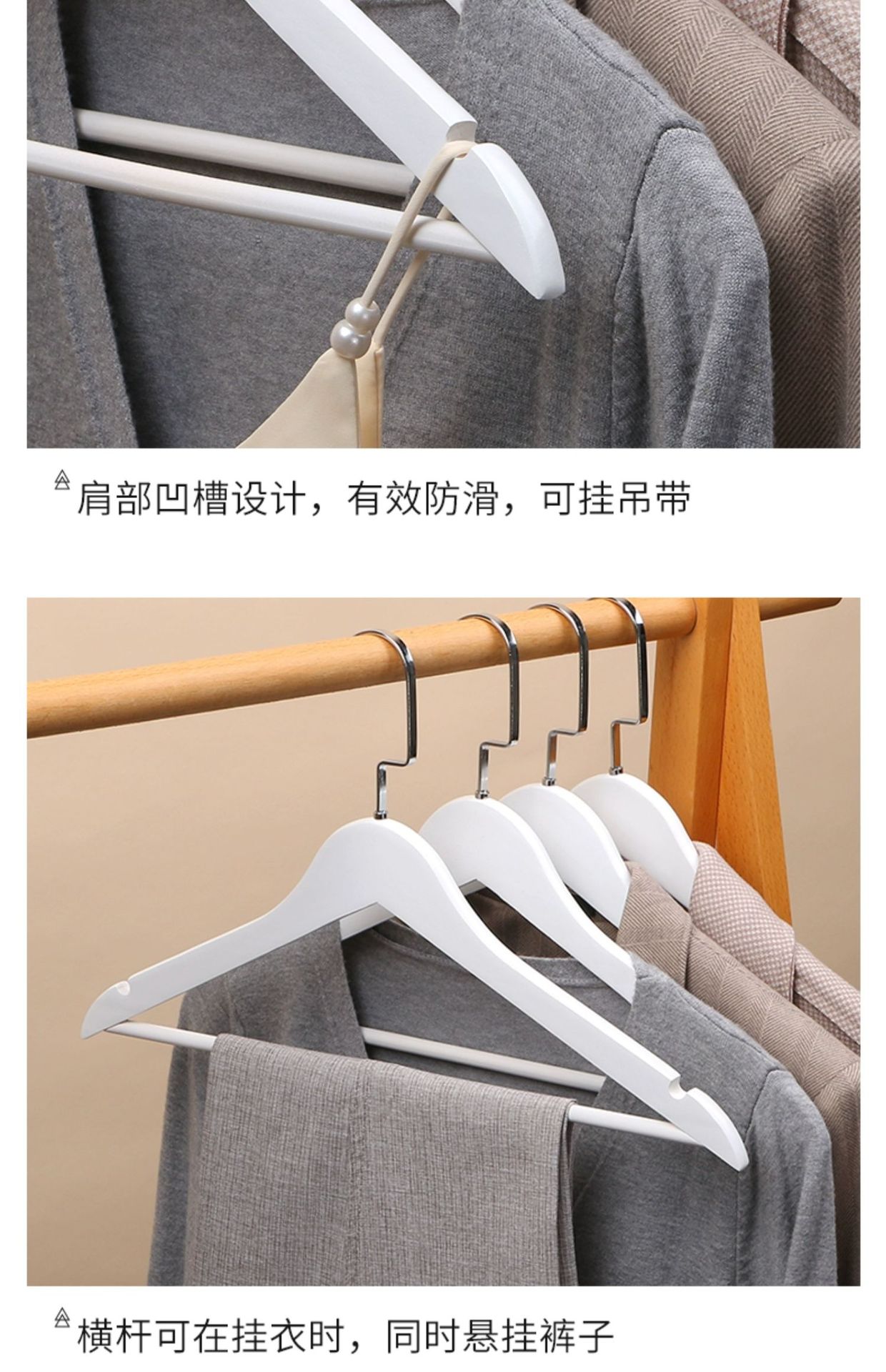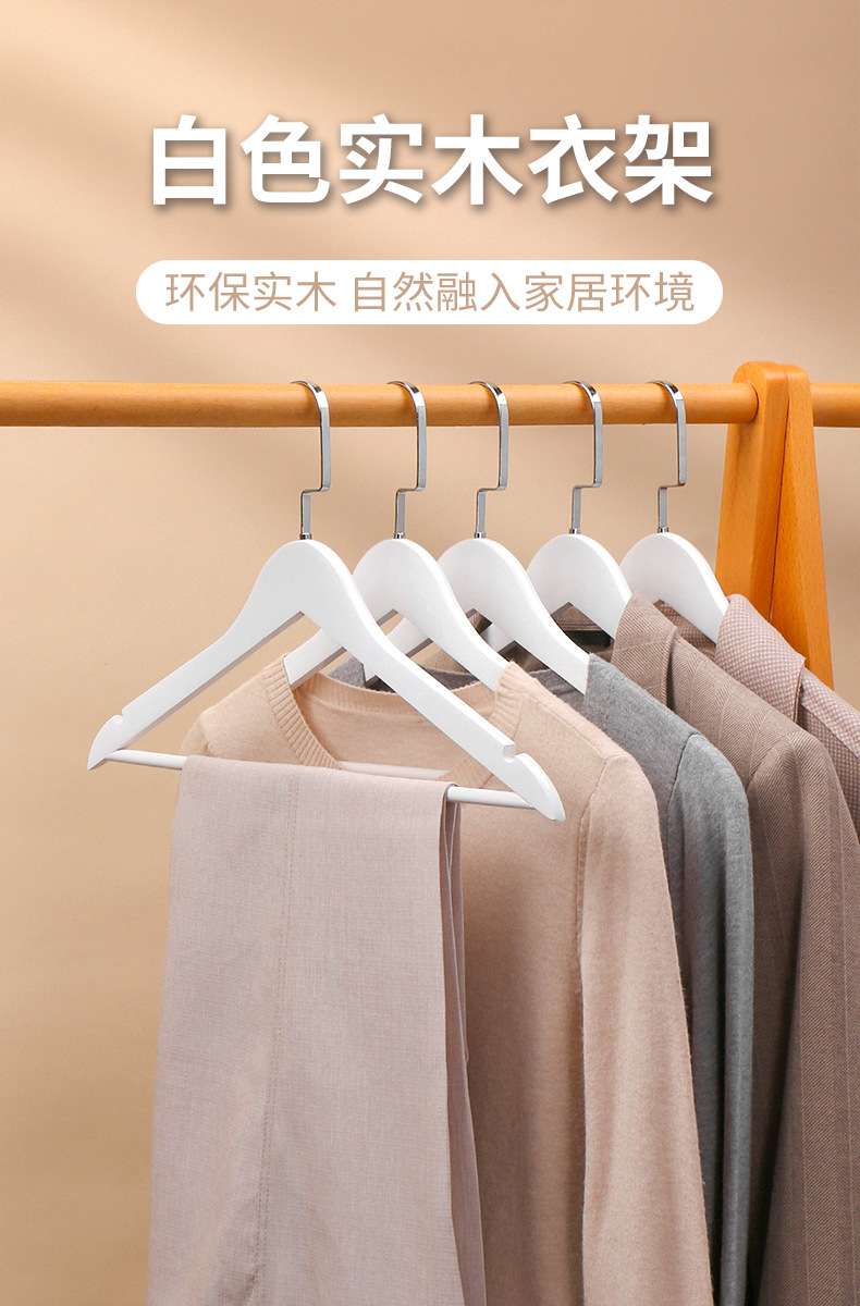 흰색 단단한 나무 옷 옷걸이 가정용 옷 교수형 침실 옷감 플랫 훅 미끄럼 방지 원활한 나무 옷 교수형 성인 옷스토어 가기
