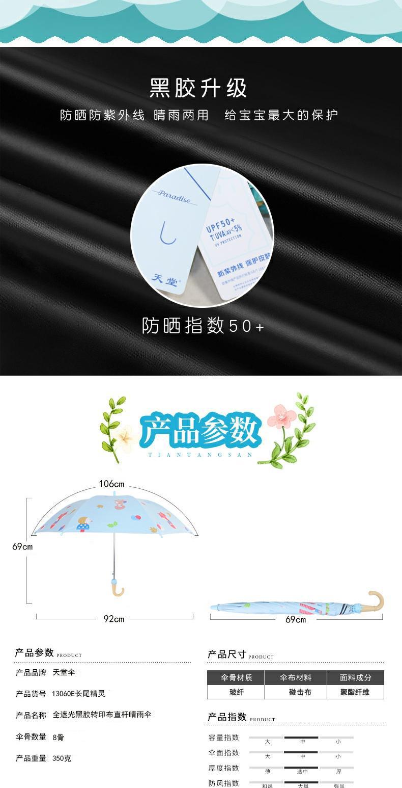 파라다이스 우산 귀여운 어린이 화창한 우산 써니 우산 유치원 만화 스트레이트 핸들 우산 긴 손잡이 우산 남성과 여성의 검은 접착제스토어 가기