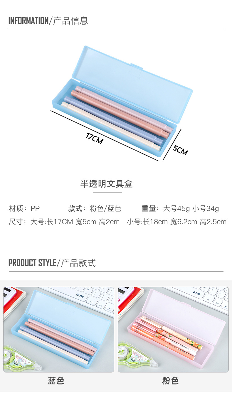 프로스트 반투명 문구 상자 간단한 Ins 학생 문구 펜 상자 절묘한 휴대용 다기능 문구 상자