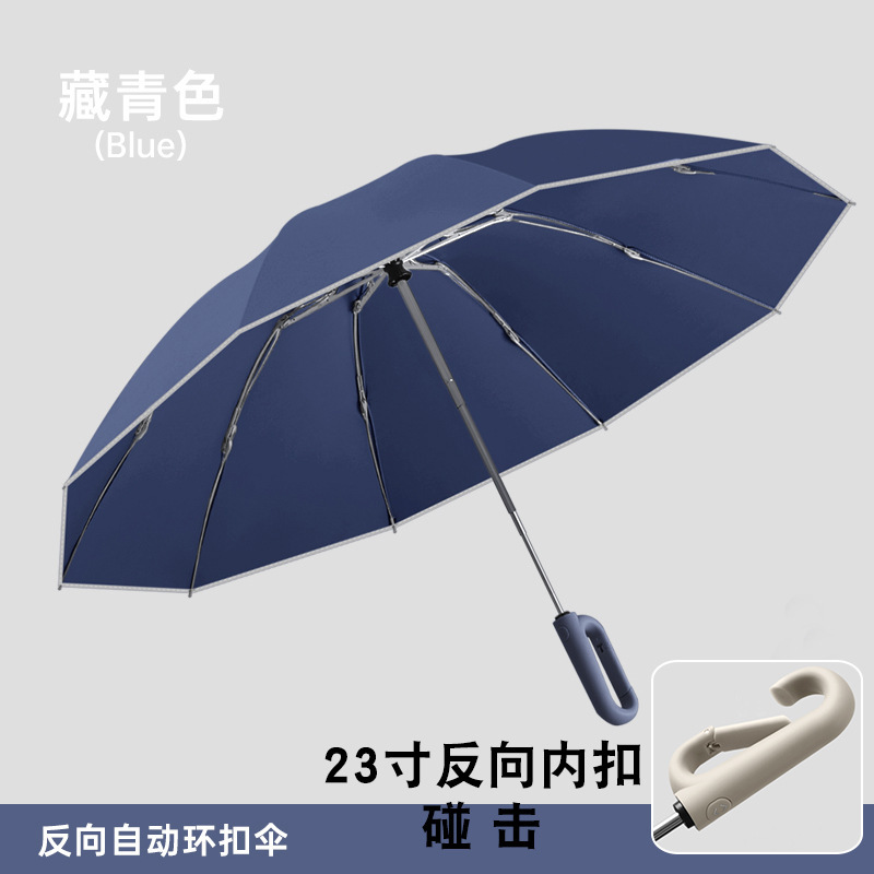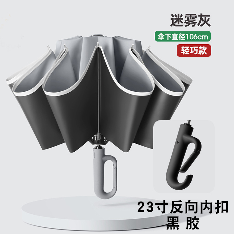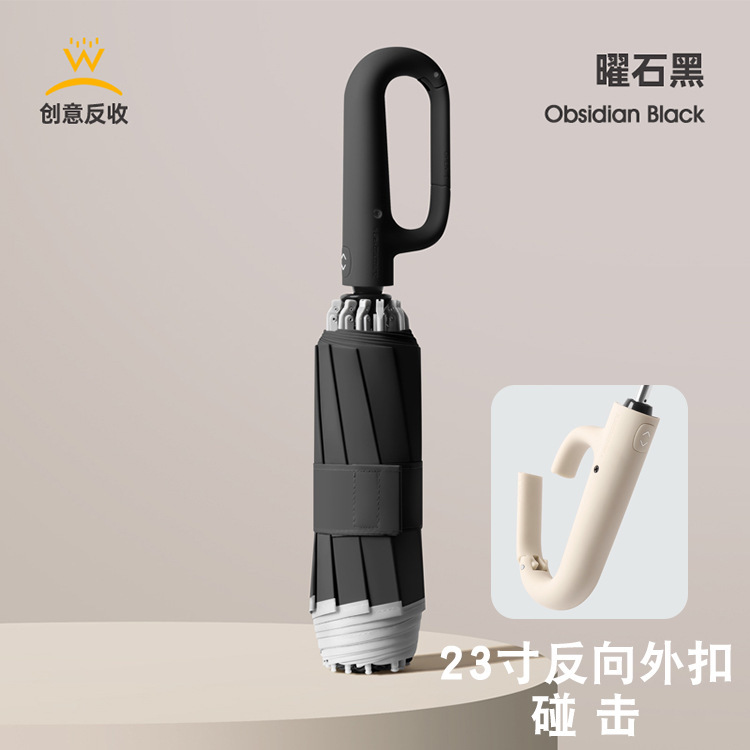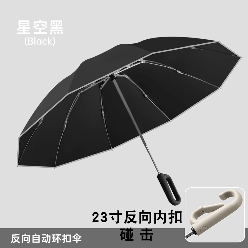 23인치 27단 역방향 버클 완전 차광 자동 우산 10단 접이식 방풍 이중 차양 자외선 차단 블랙 글로스 방수스토어 가기