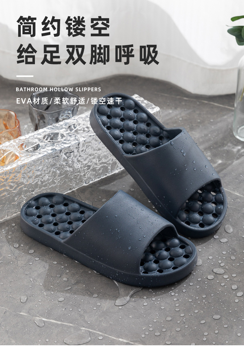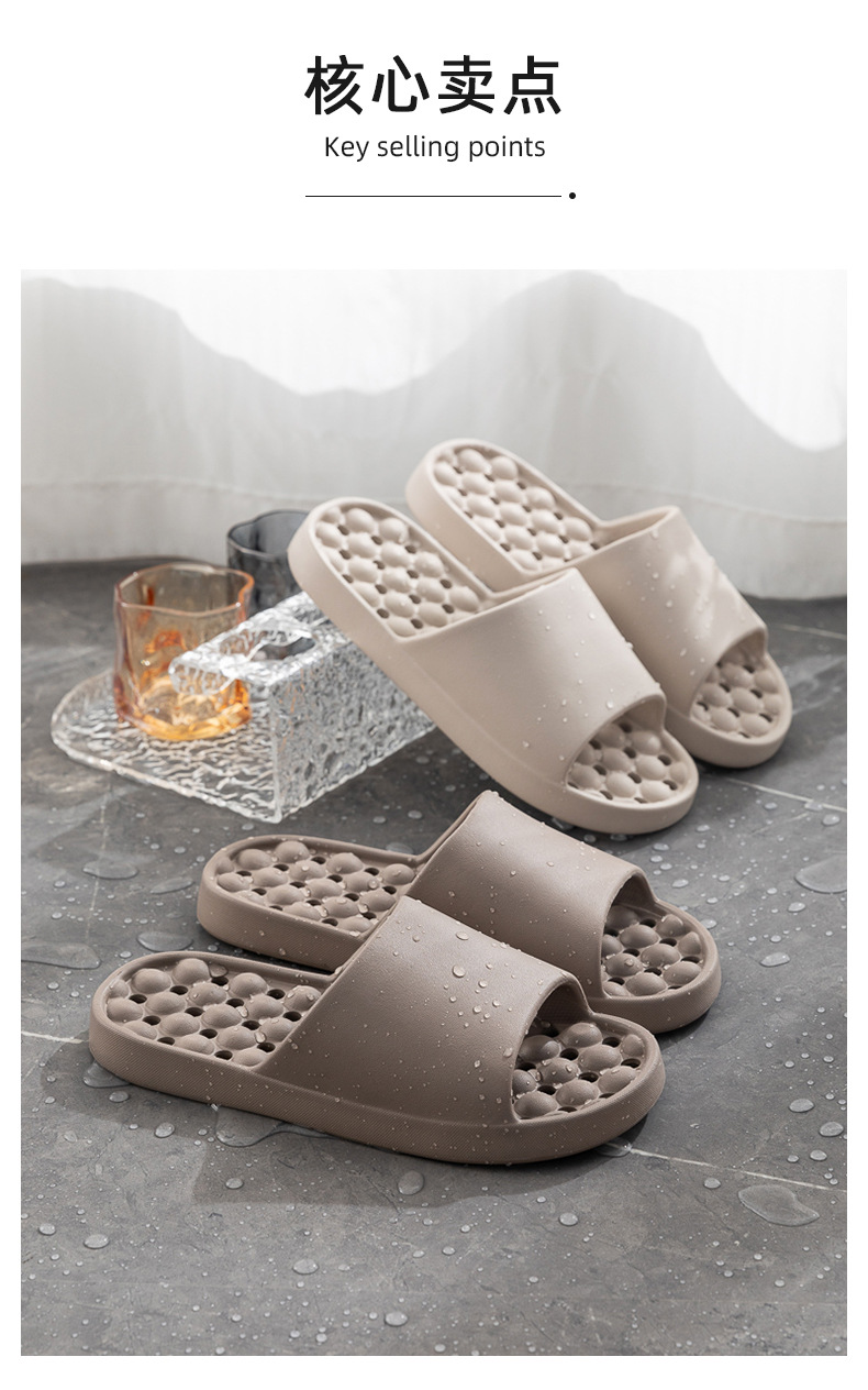 2024 홈 홈 슬리퍼 홈 미끄럼 방지 마사지 여름 EVA 부드러운 바닥 단계 배설물 느낌 욕실 새는 샌들 도매스토어 가기