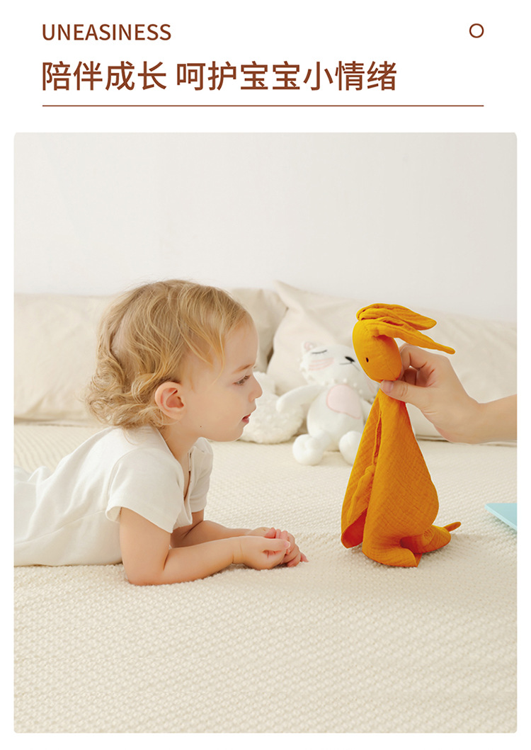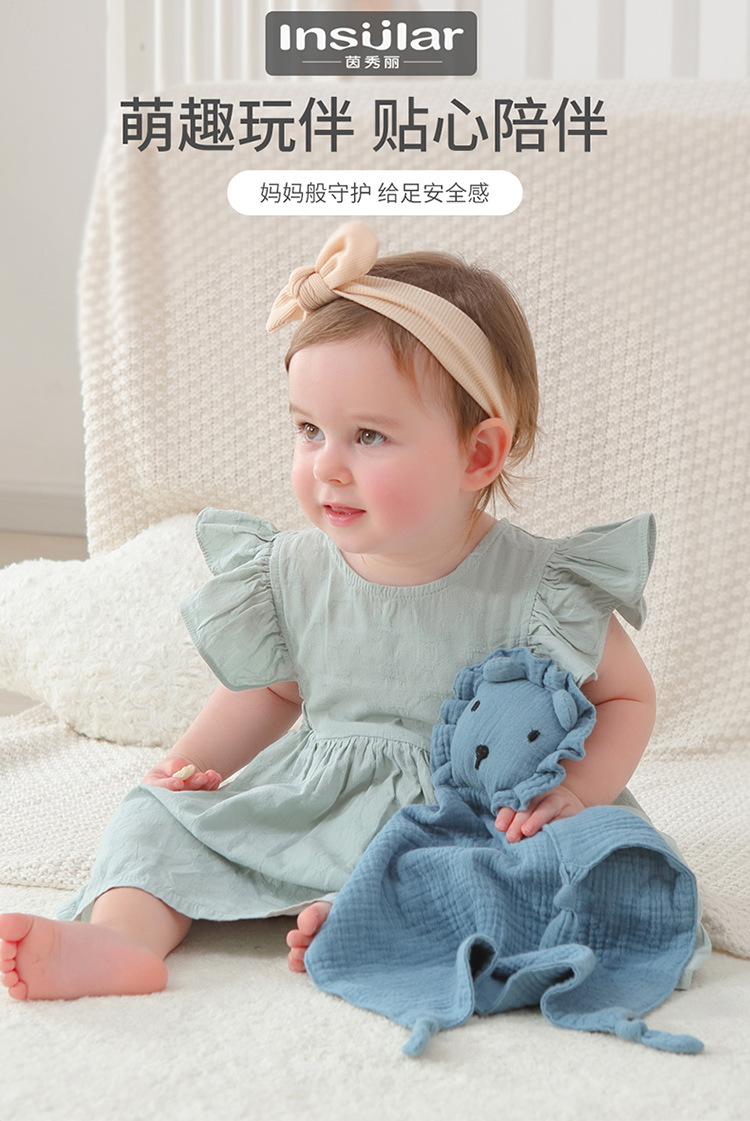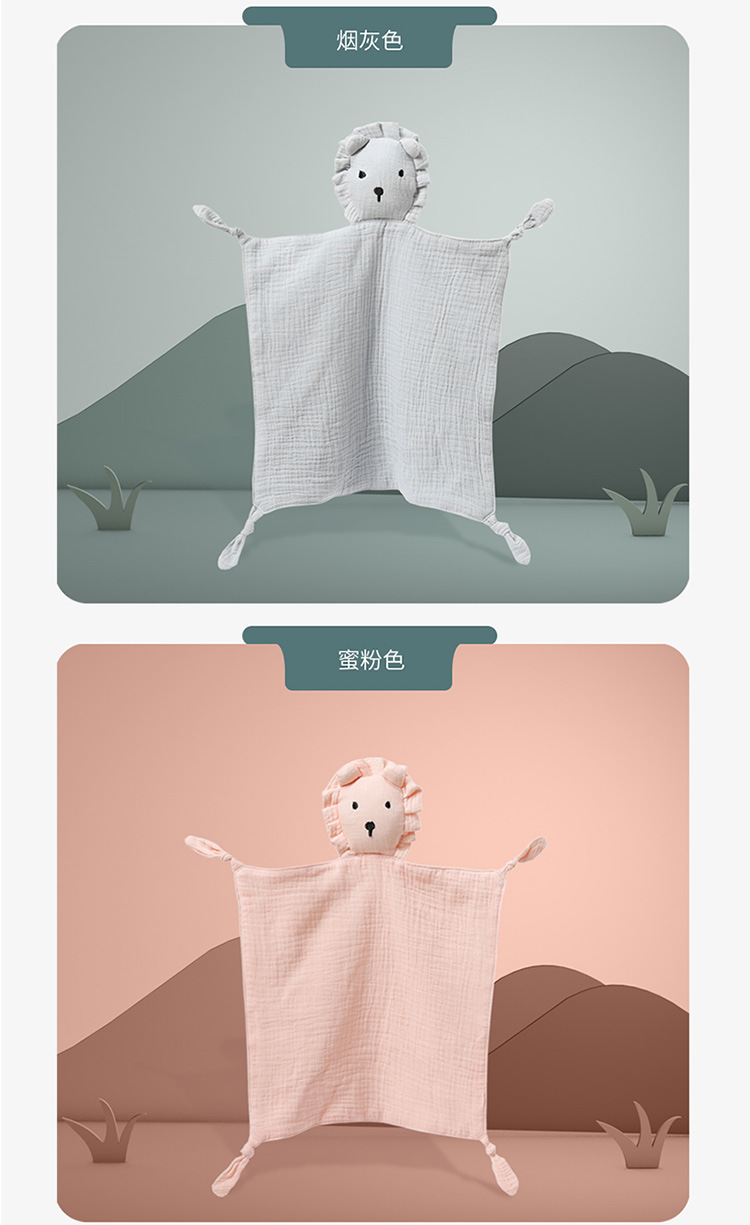 婴儿纱布安抚巾纯棉宝宝陪睡玩偶狮子安抚手帕安抚玩具跨境