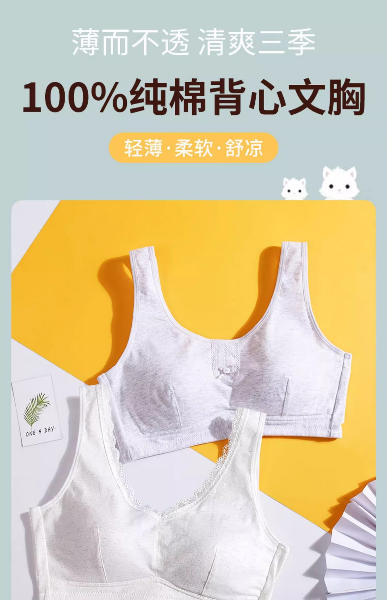 중학생 고등학생 고등학생 발달 기간 대형 브래지어 소녀 면 통기성 스포츠 스타일 작은 조끼 속옷스토어 가기