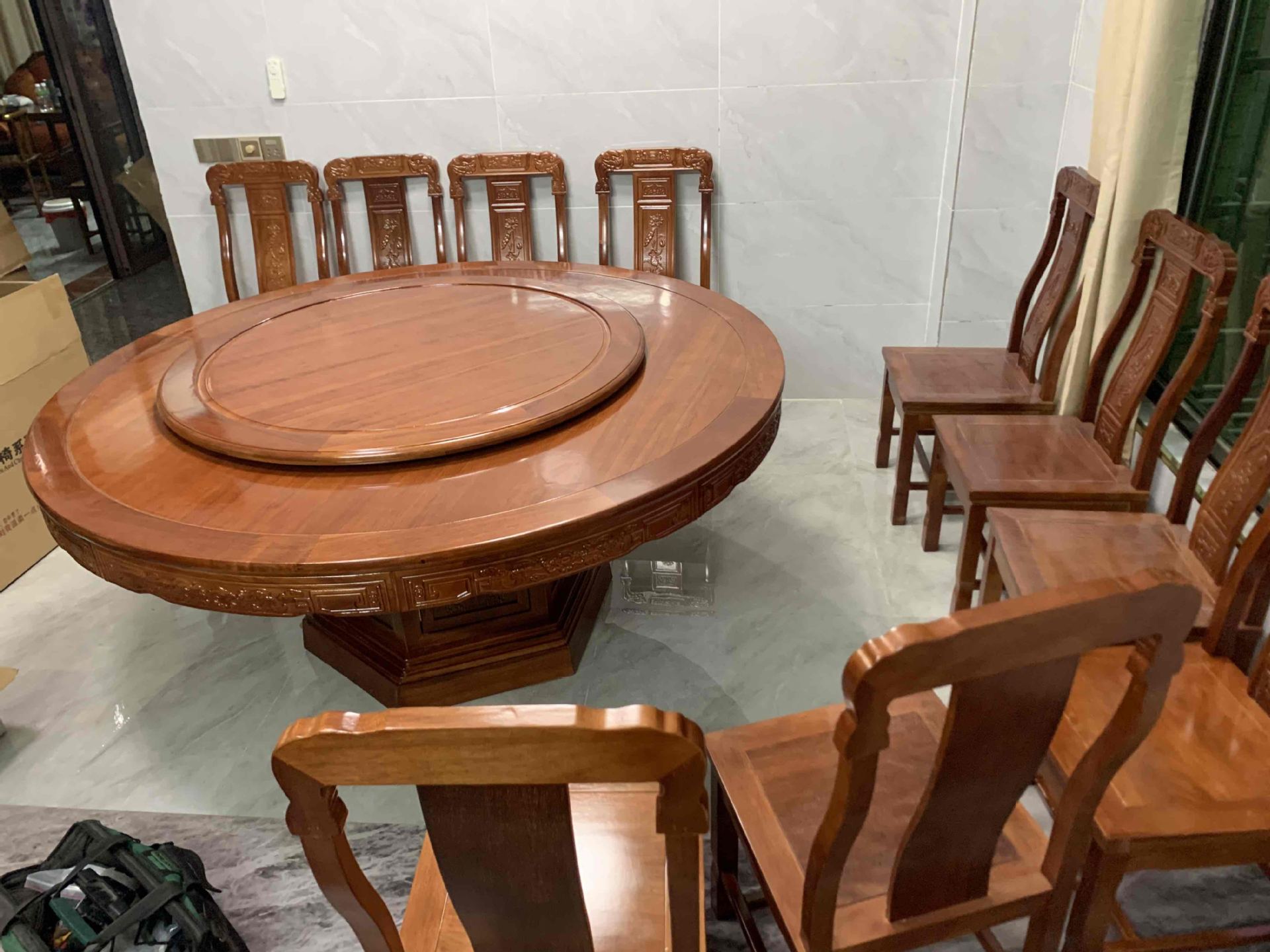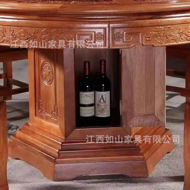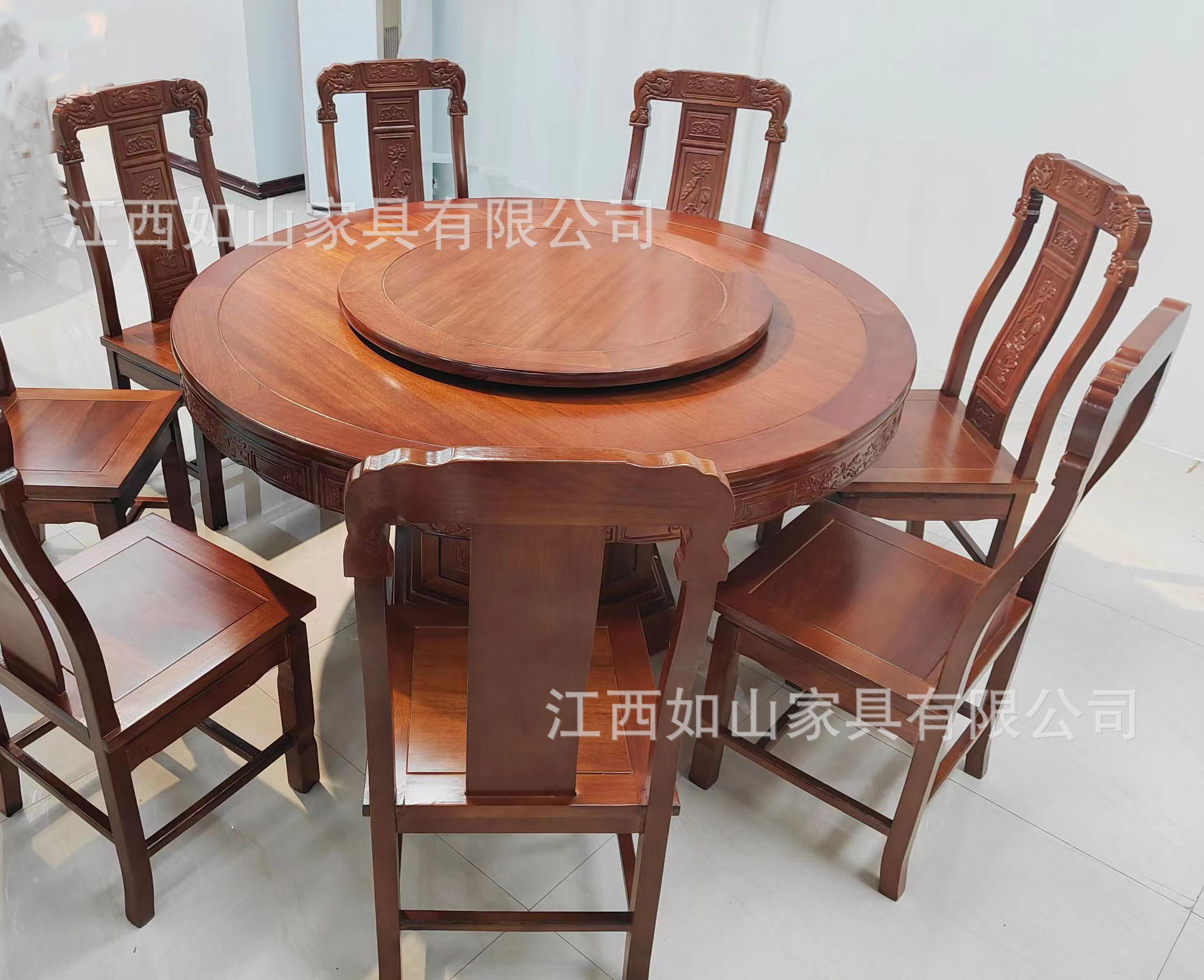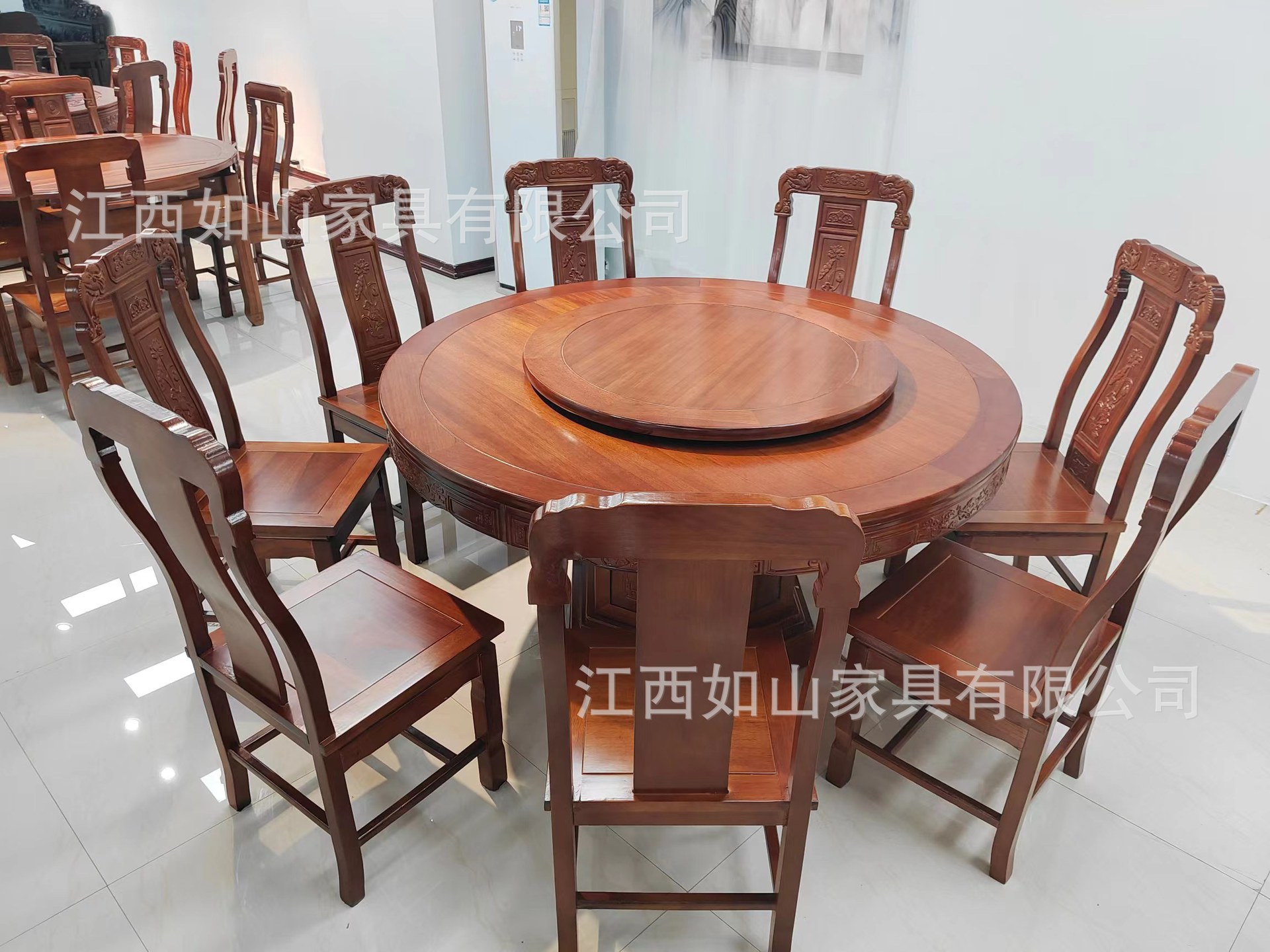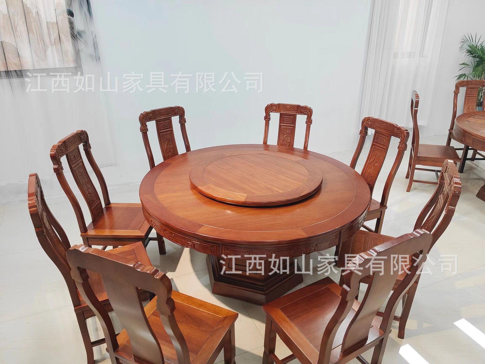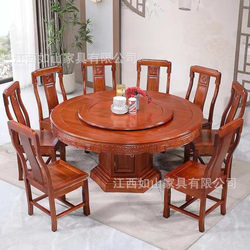 로즈 우드 식탁 및 의자 조합 클래식 조각 레스토랑 중국 스타일 원탁과 턴테이블 16 인민 대회 호텔 가구스토어 가기