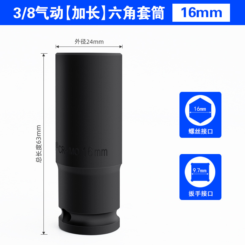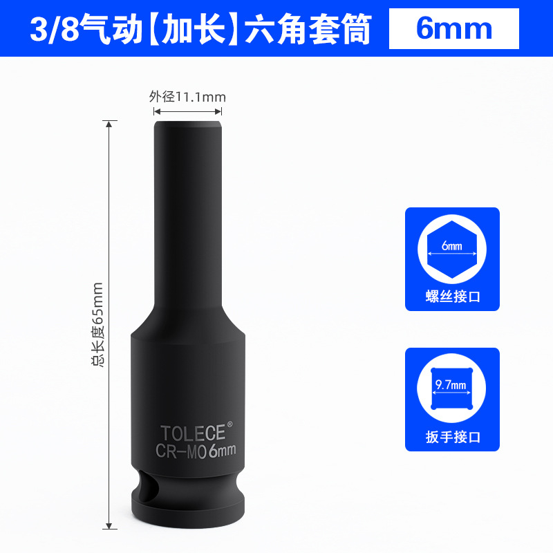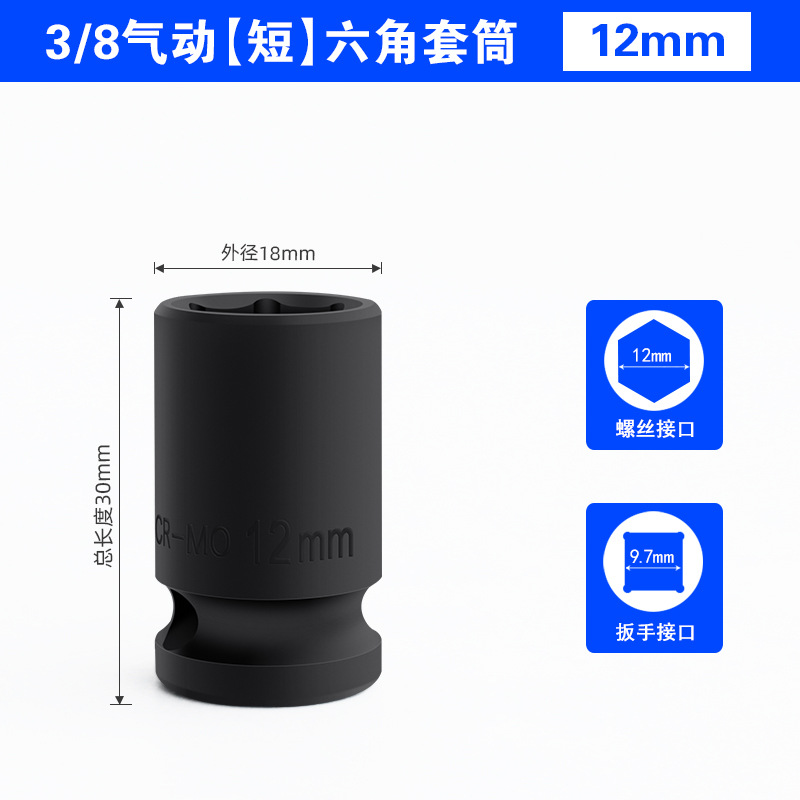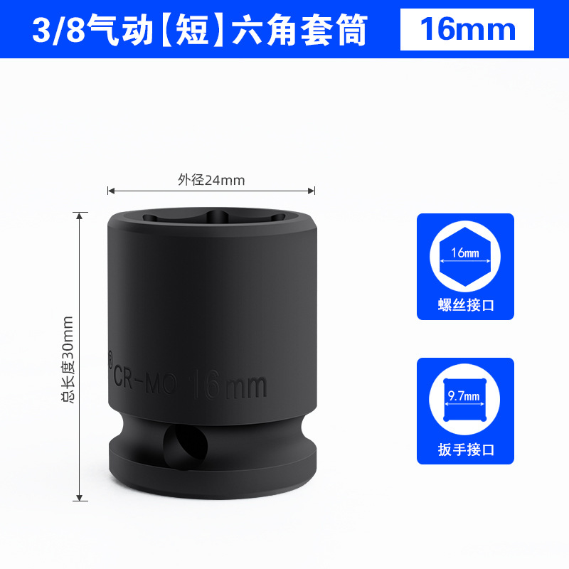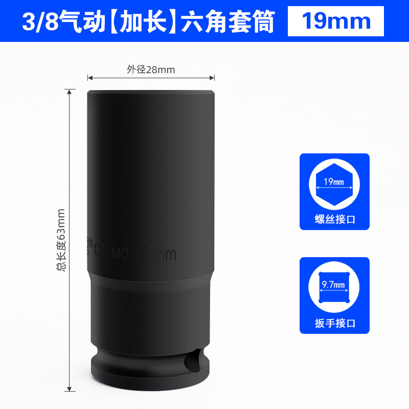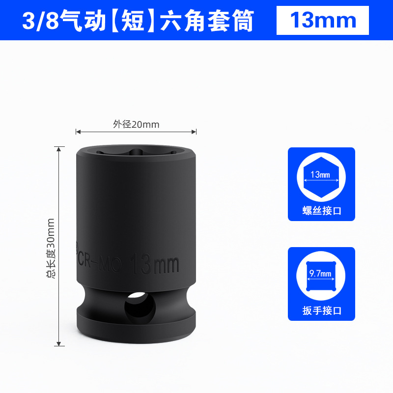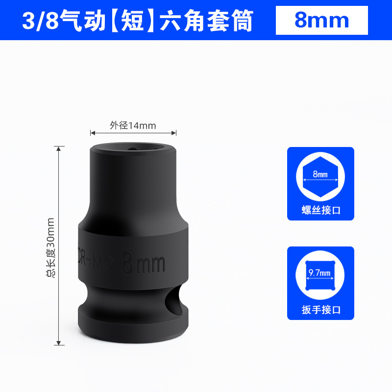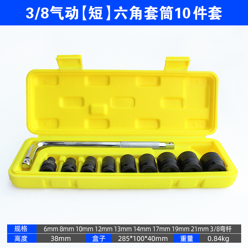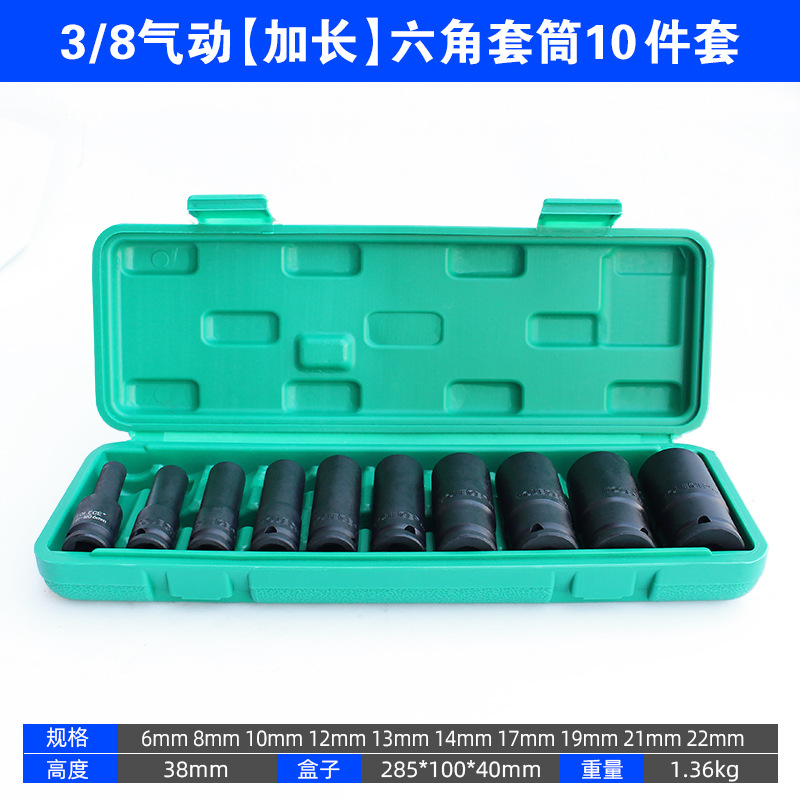 3/8 시리즈 10mm 공압 캐논 슬리브 무거운 두꺼운 육각형 슬리브 헤드 길고 짧은 소매 전기 렌치