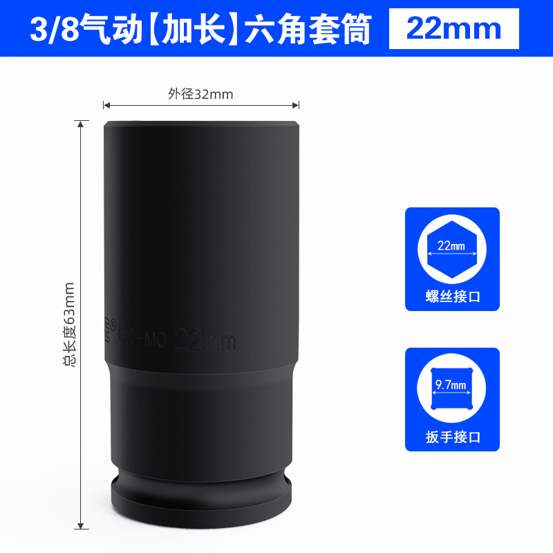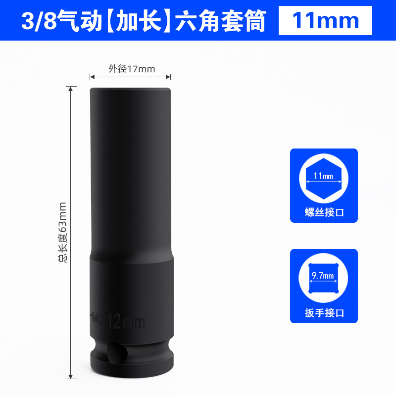 3/8 시리즈 10mm 공압 캐논 슬리브 무거운 두꺼운 육각형 슬리브 헤드 길고 짧은 소매 전기 렌치스토어 가기