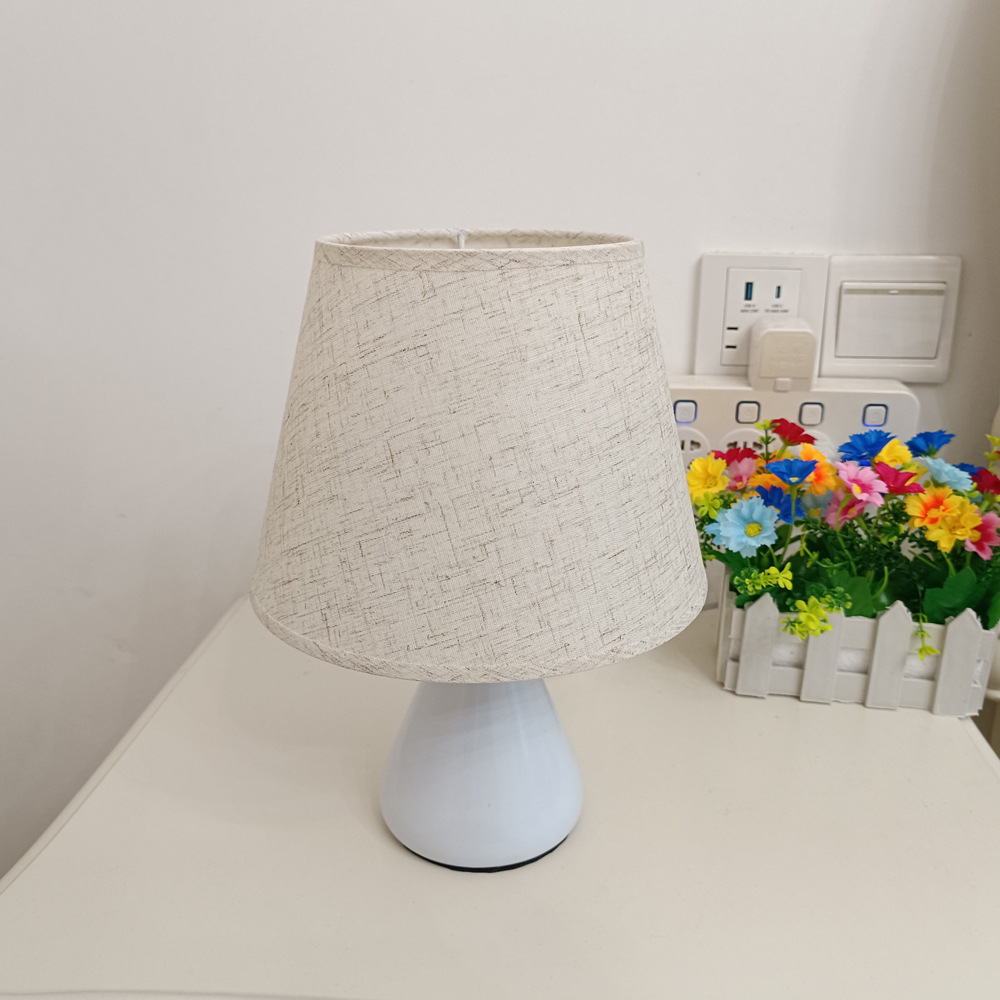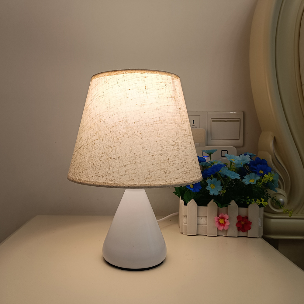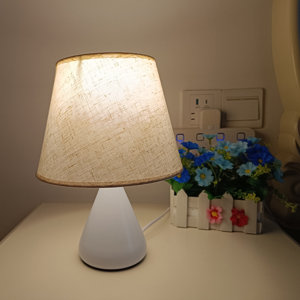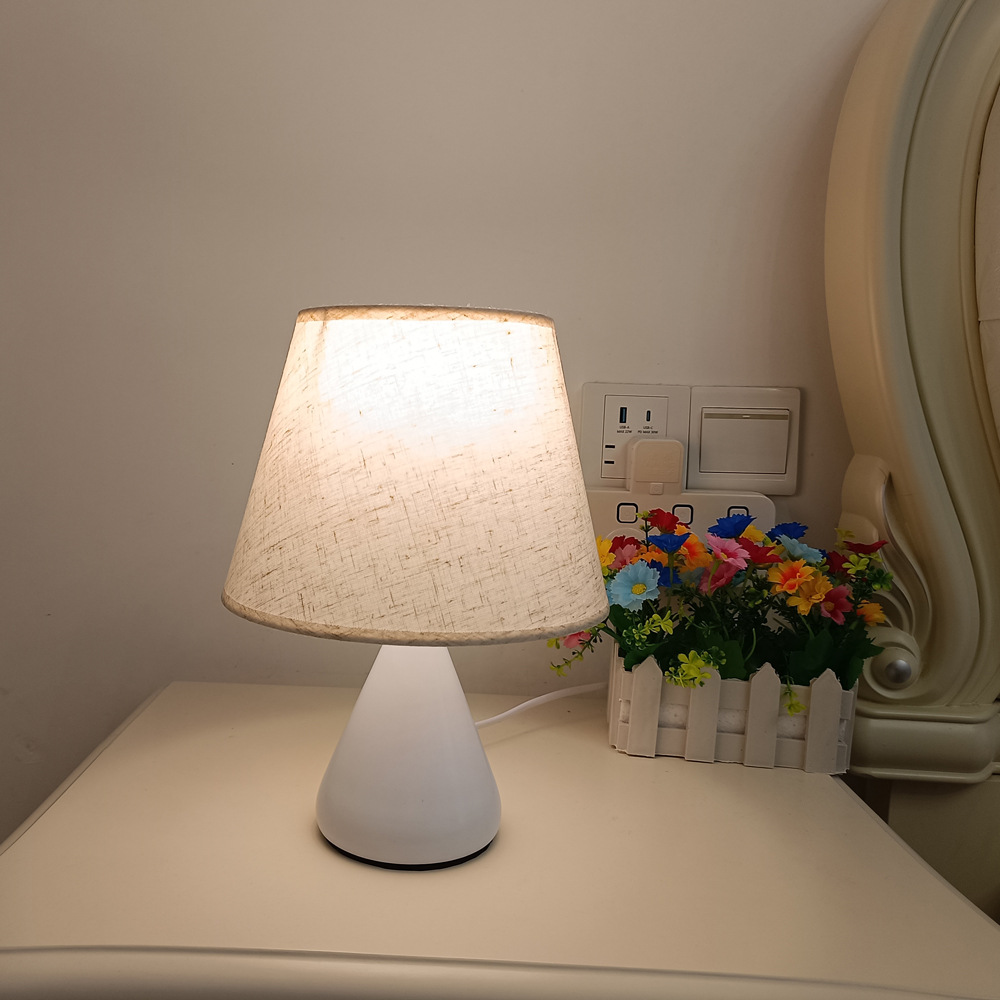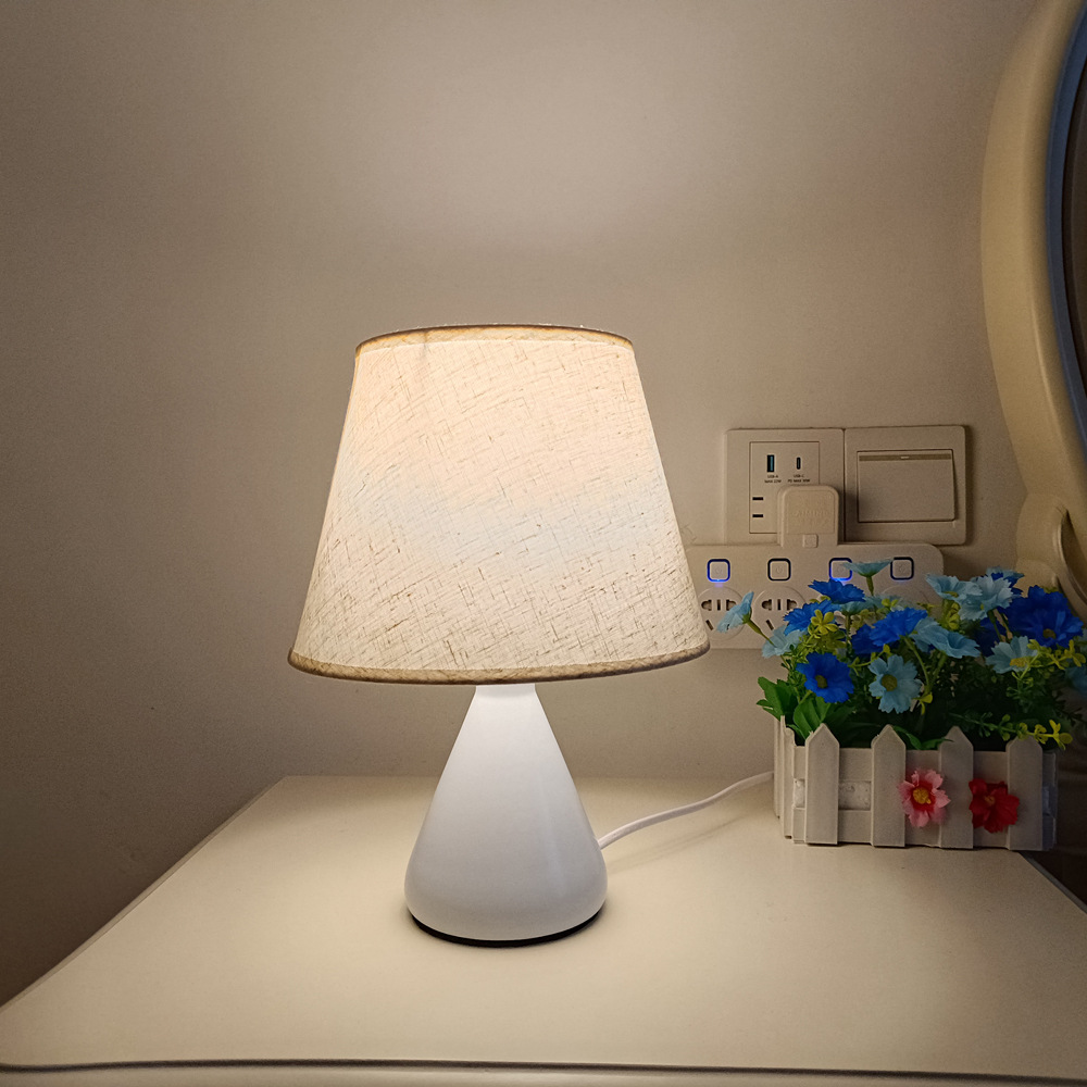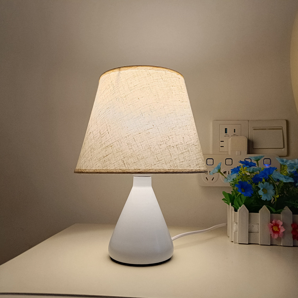 간단한 북유럽 창조적 인 직물 침대 옆 작은 테이블 램프 흰색 천 루 모양의 테이블 램프 침실 조명 눈 보호 야간 조명