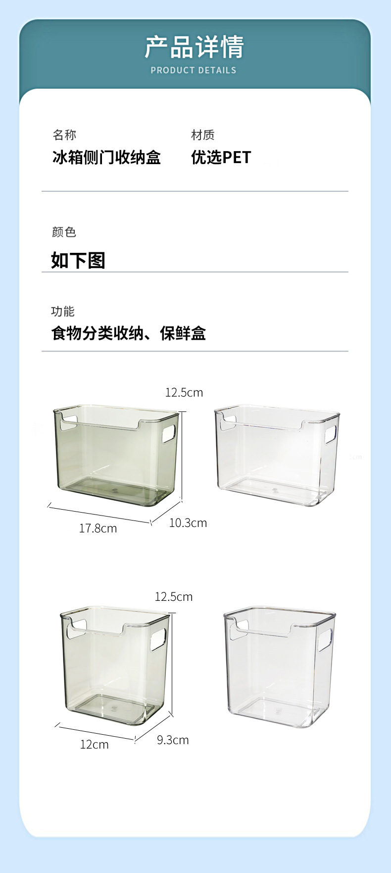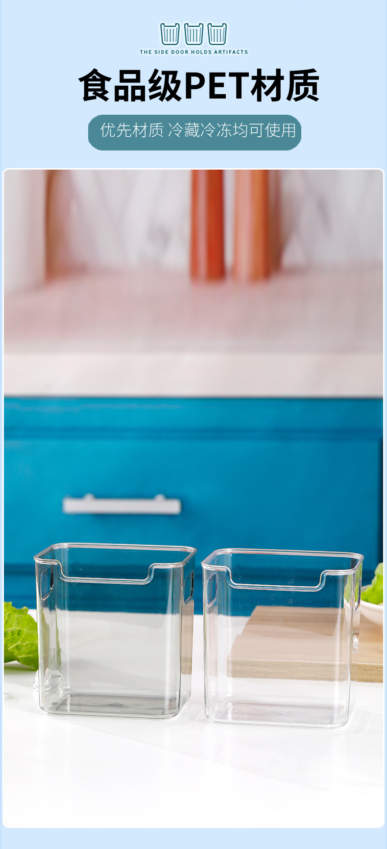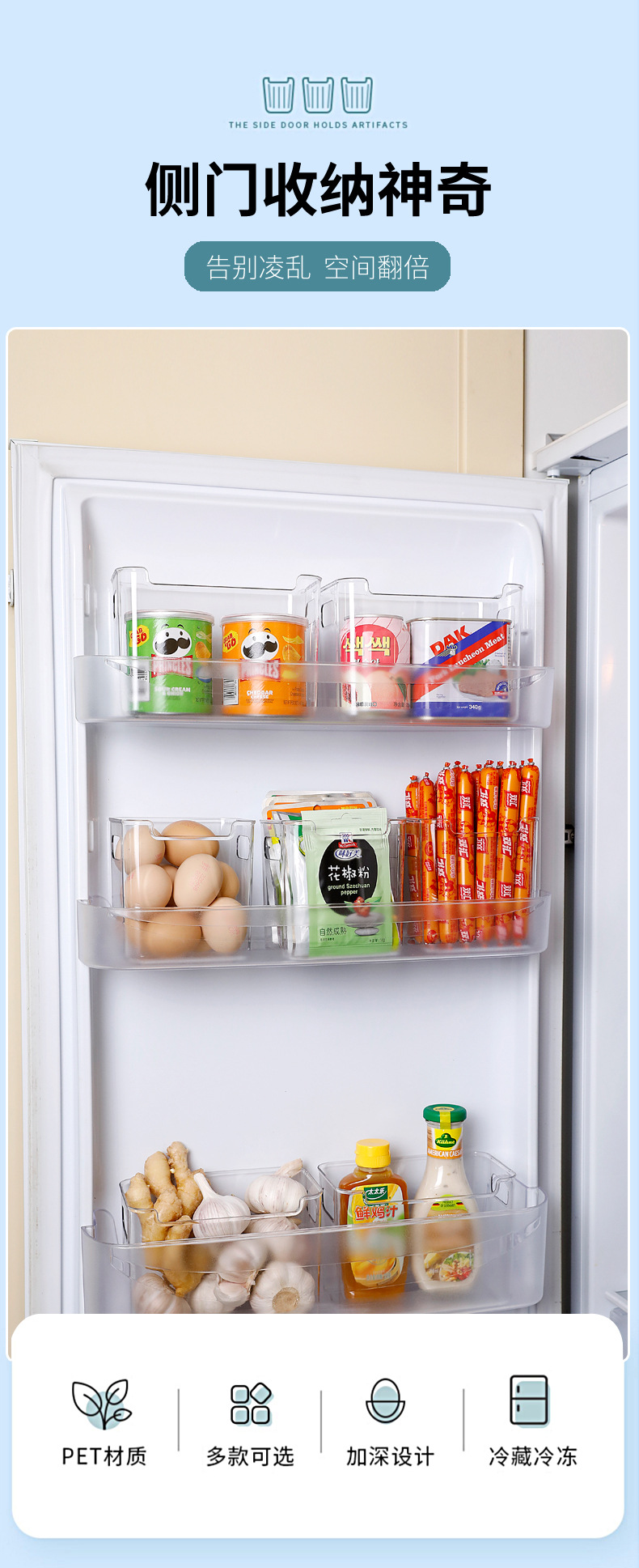 냉장고 측면 도어 수납함 주방 식품 등급 PET 분류함 가정용 채소 보관함 과일 정리 도구