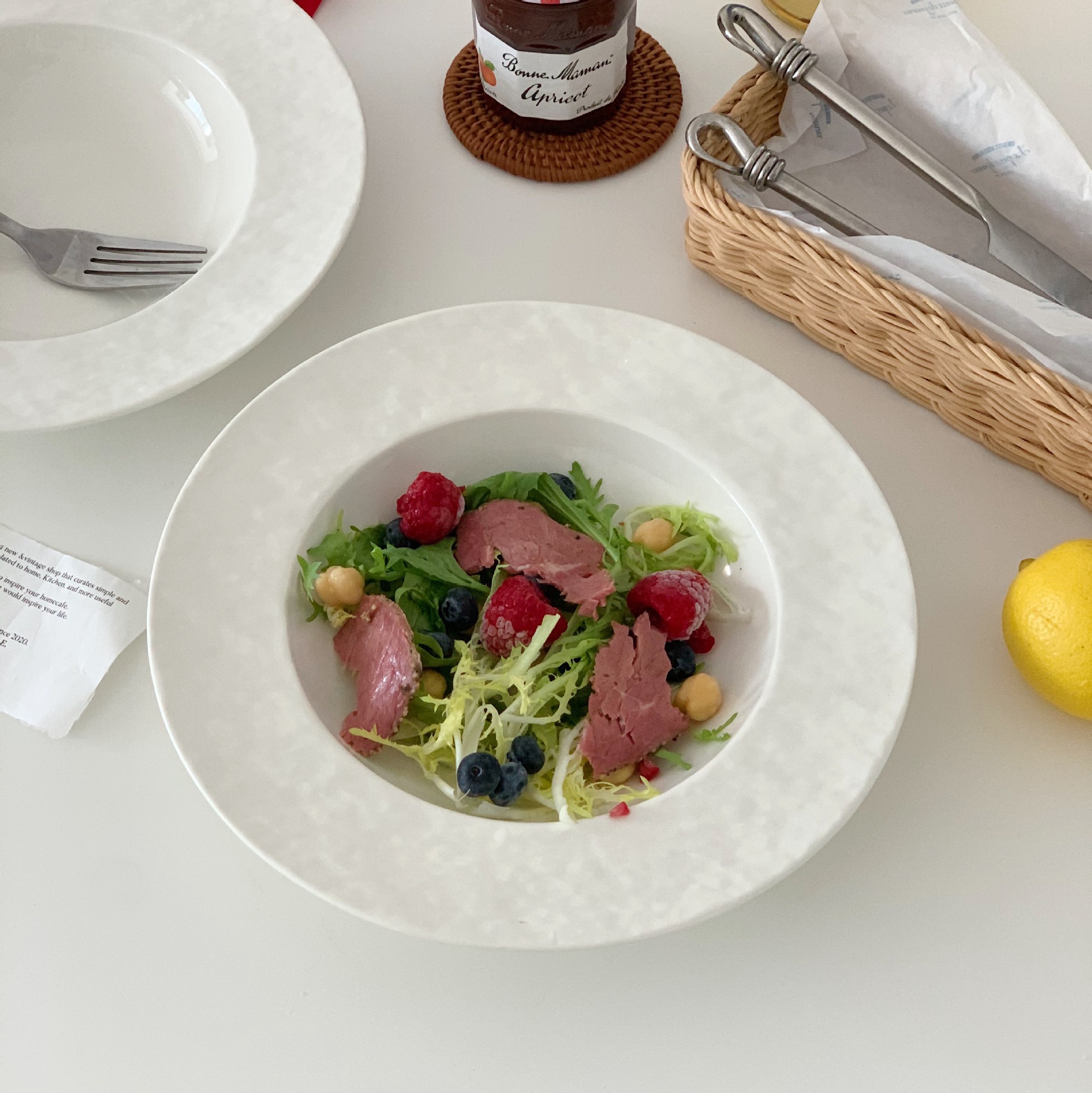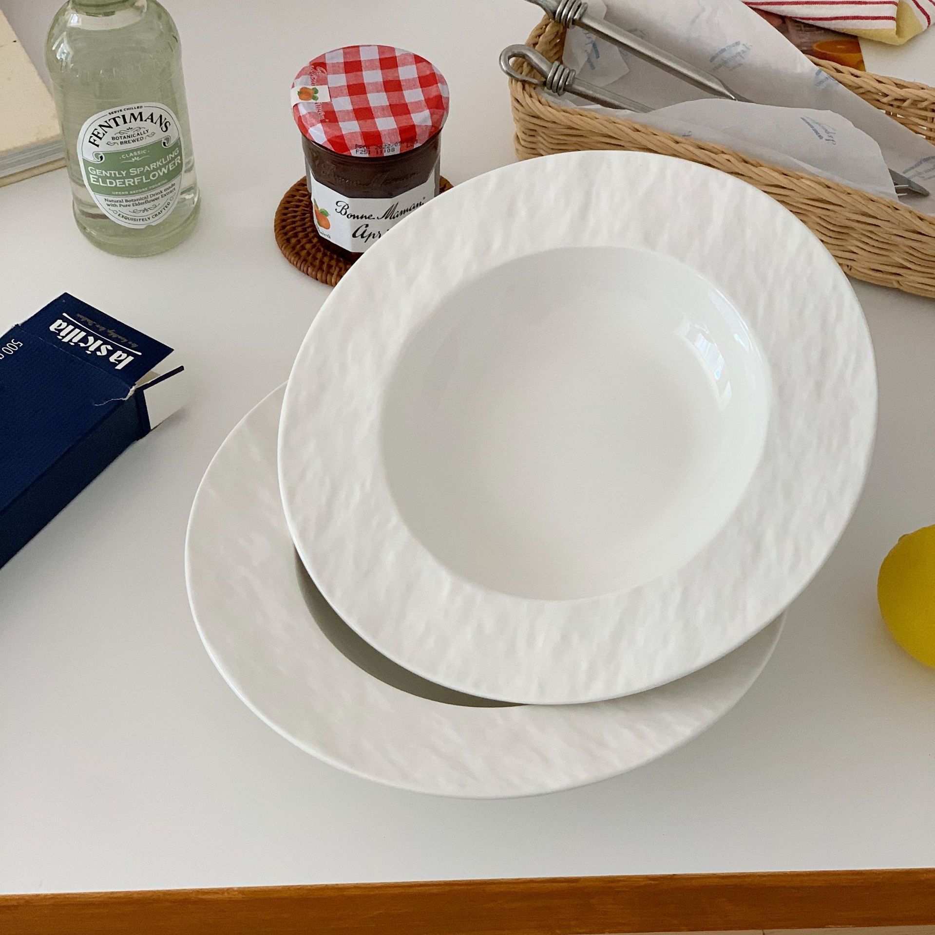 초고급스러운 인스타 감성의 서양식 접시, 심플한 순백색 스테이크 접시, 가정용 요리 접시, 세라믹 디저트 접시, 아침 식사 접시스토어 가기