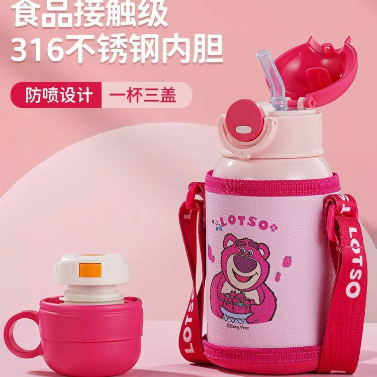 딸기 곰 정품 IP 보온병 플라스틱 유리 컬렉션 어린이 학생 316 비디오 학년 물자 컵 냄비스토어 가기
