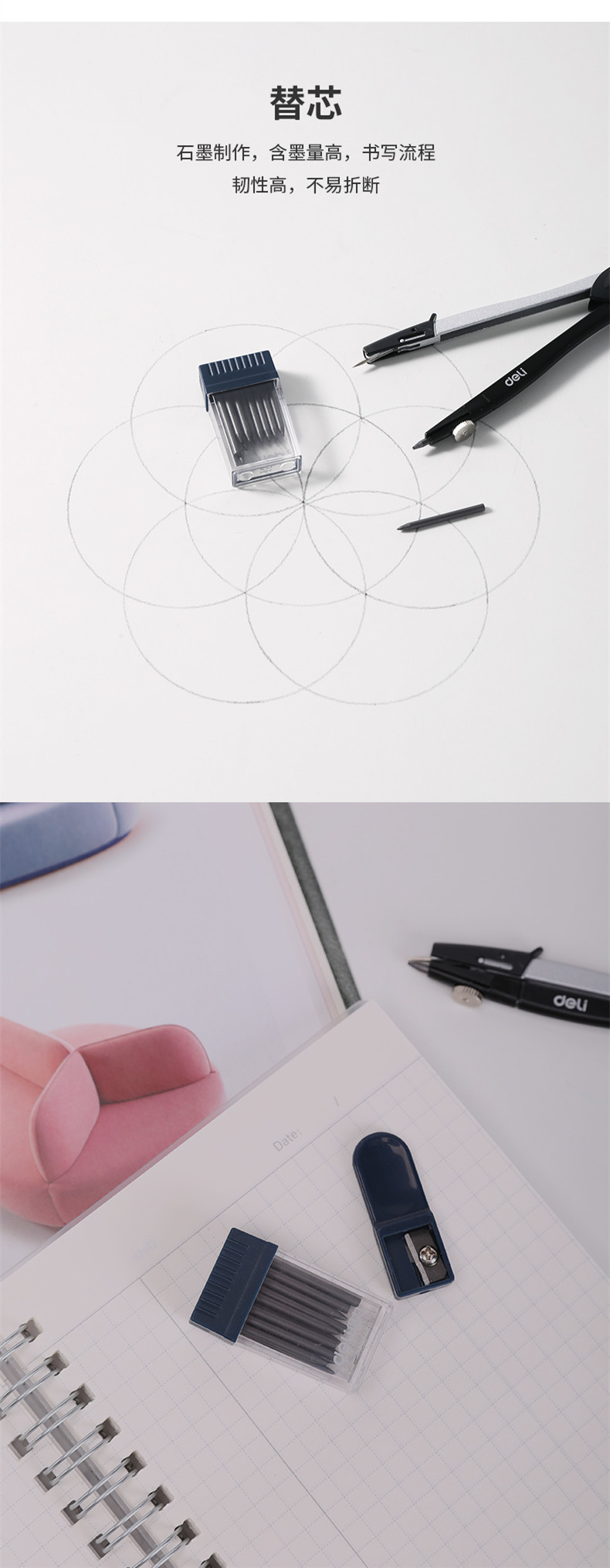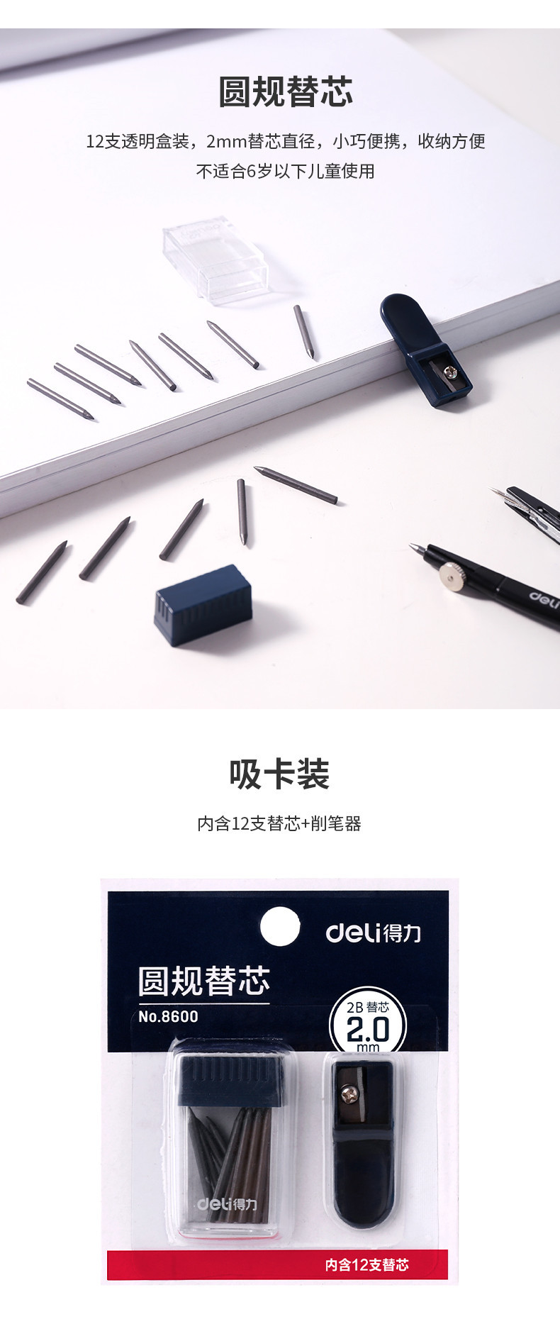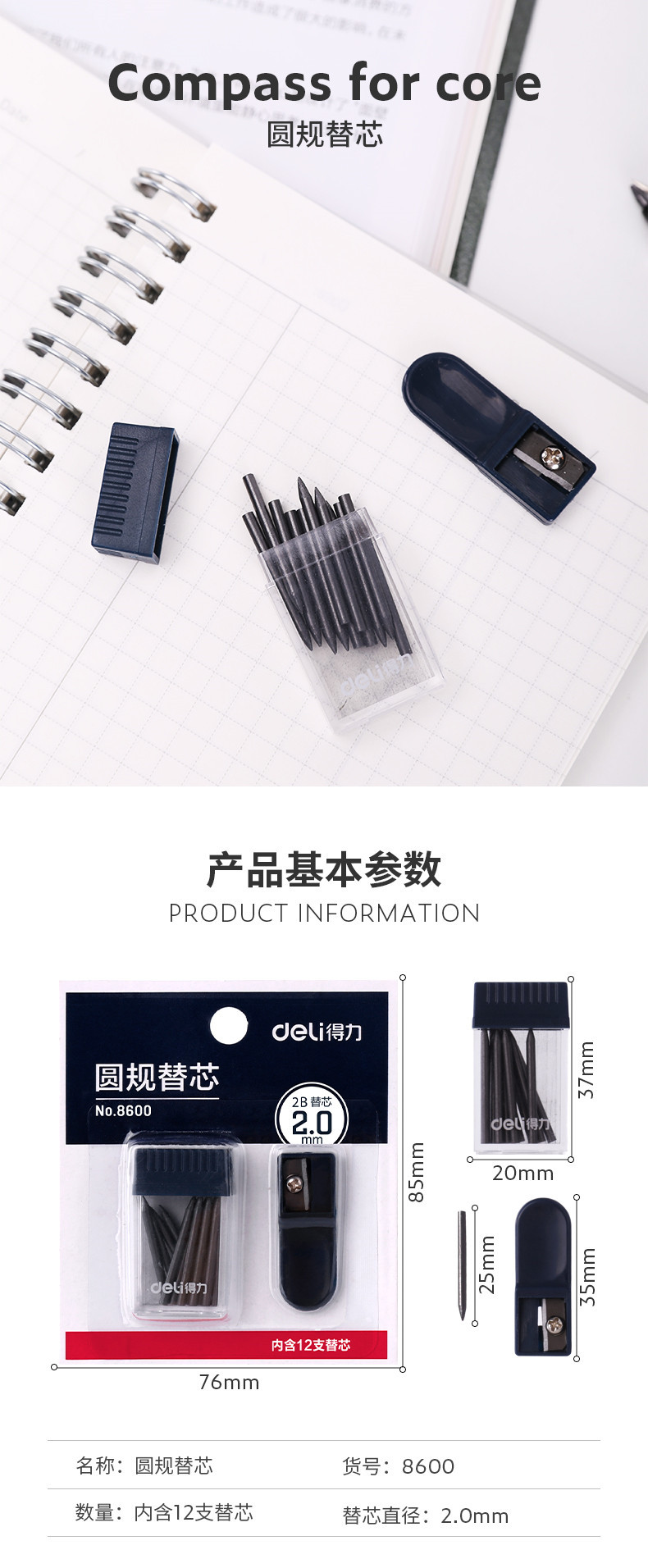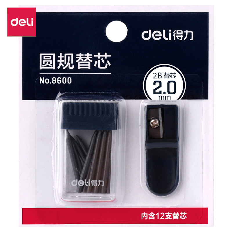 델리 8600, 코어 2B 코어 2.0mm 리드 코어 오피스 학습 나침반 코어 연필 깎기 세트