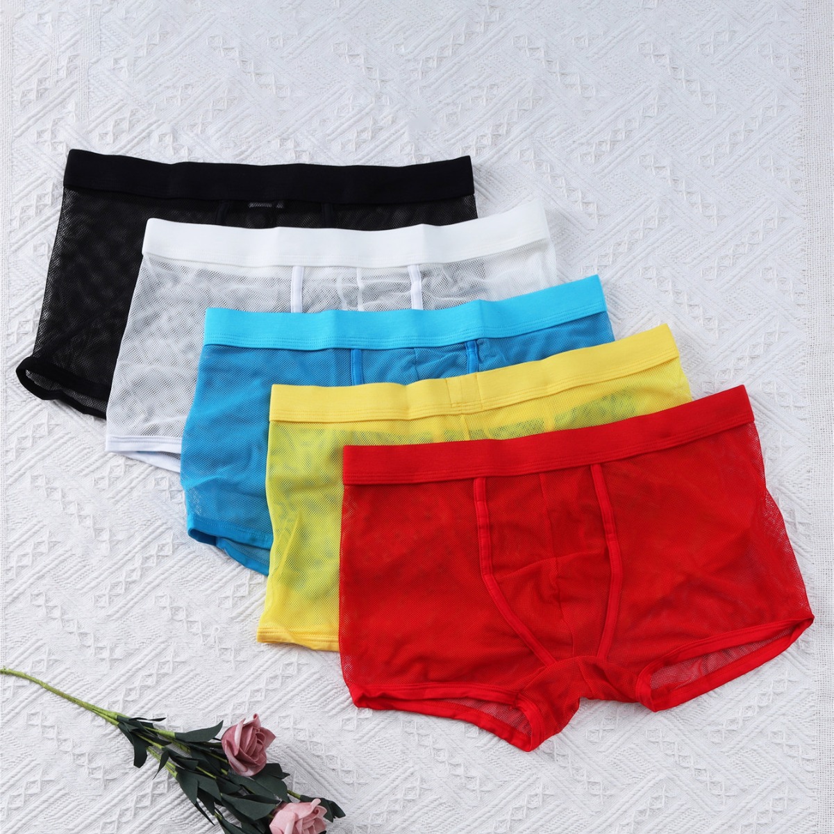 대외 무역 남성 속옷 복서 바지 투명 얇은 4 각 바지 여름 메쉬 메쉬 메쉬 속옷 섹시한 남성 도매스토어 가기