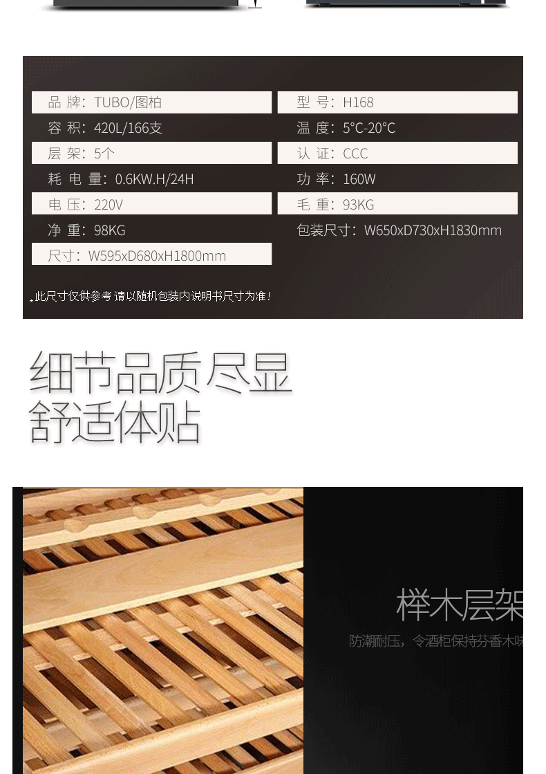 H168S 와인 쿨러, 항온 와인 캐비닛, 사계절 항온, 166병 용량, 가정용 및 상업용, 가정용 와인 냉장고, 드라이 레드 와인 냉장 보관