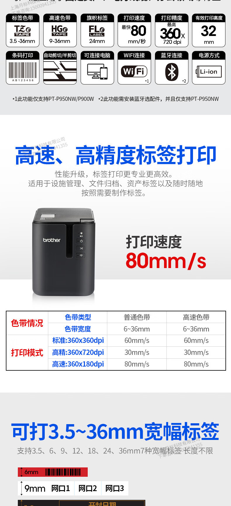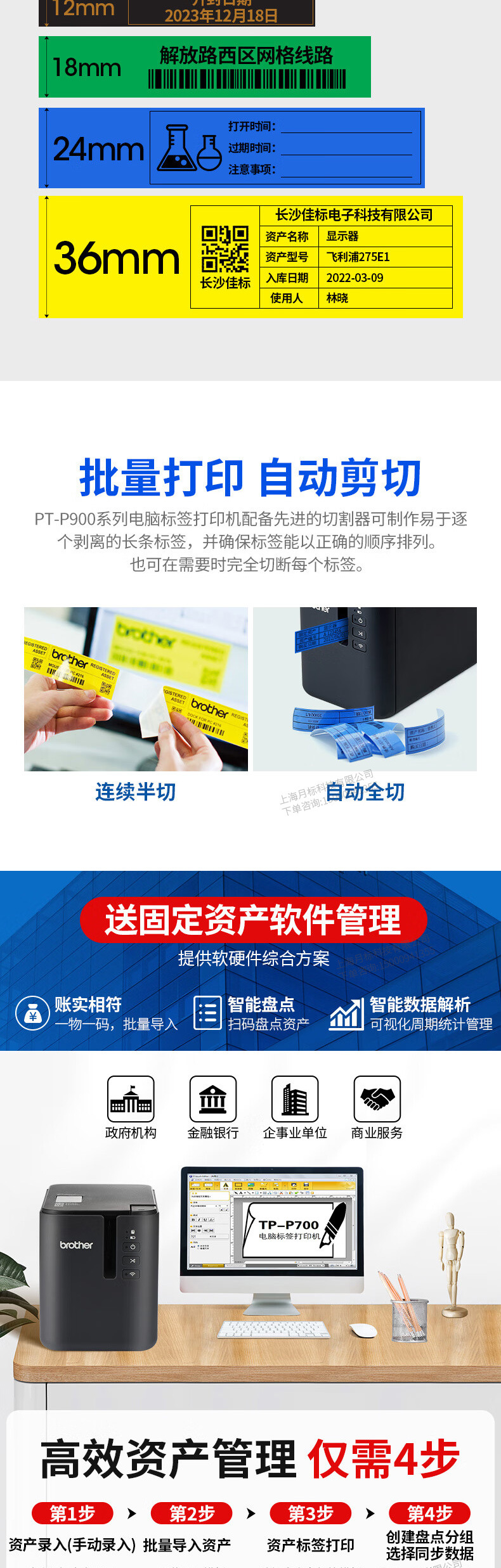 형제 라벨 기계 PT-P900 넓은 36mm 고정 자산 라벨 프린터 데스크탑 라벨 기계스토어 가기