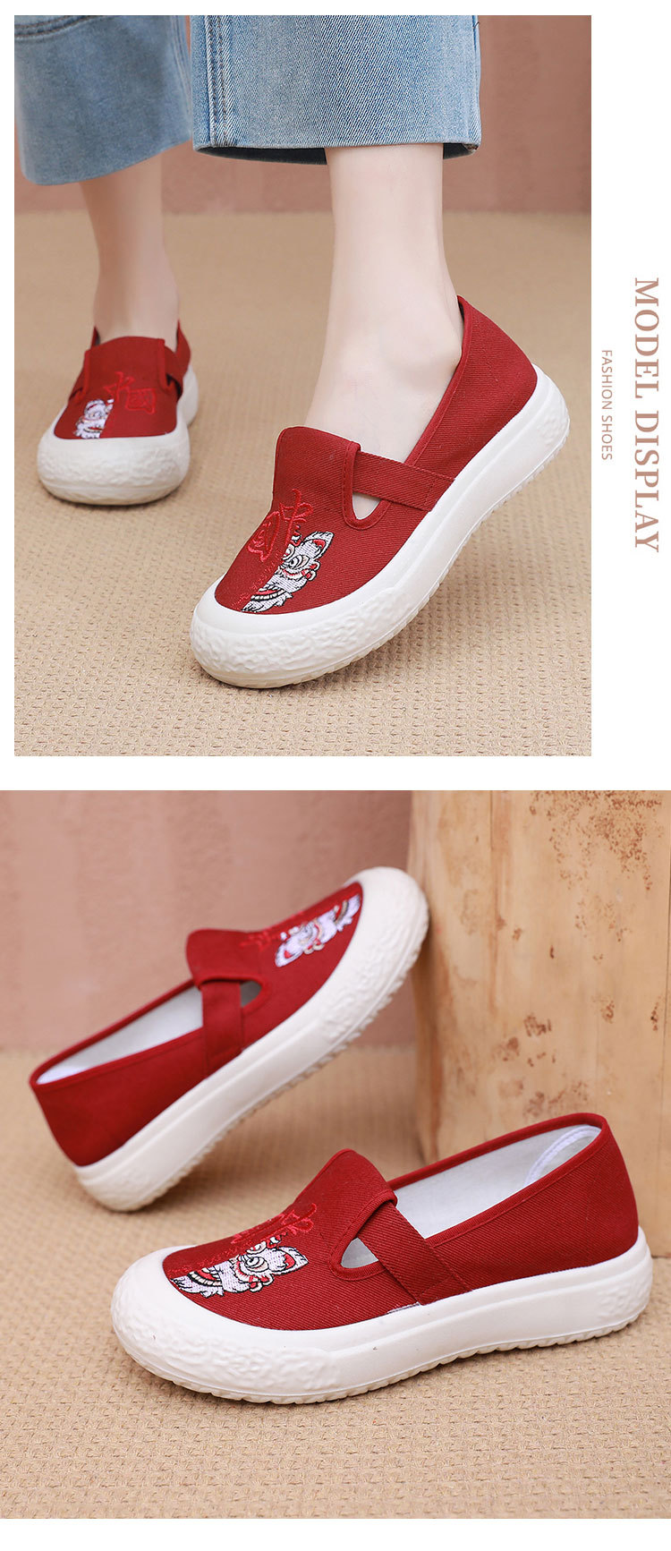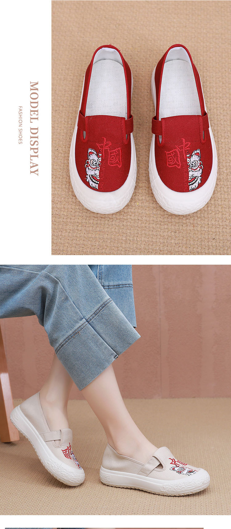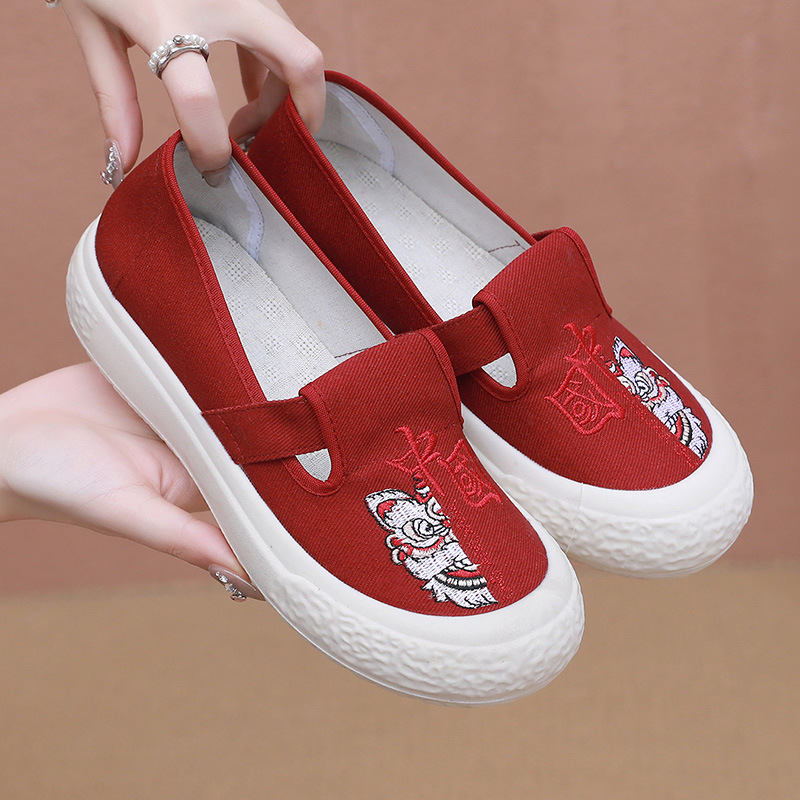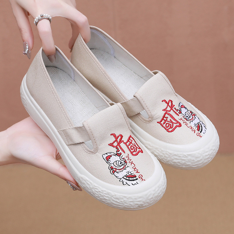봄과 여름 오래 된 베이징 새로운 여성 소프트 솔 캔버스 신발 경량 두꺼운 유일한 게으른 신발 패션 웨스턴 스타일 올 매치 어부 신발